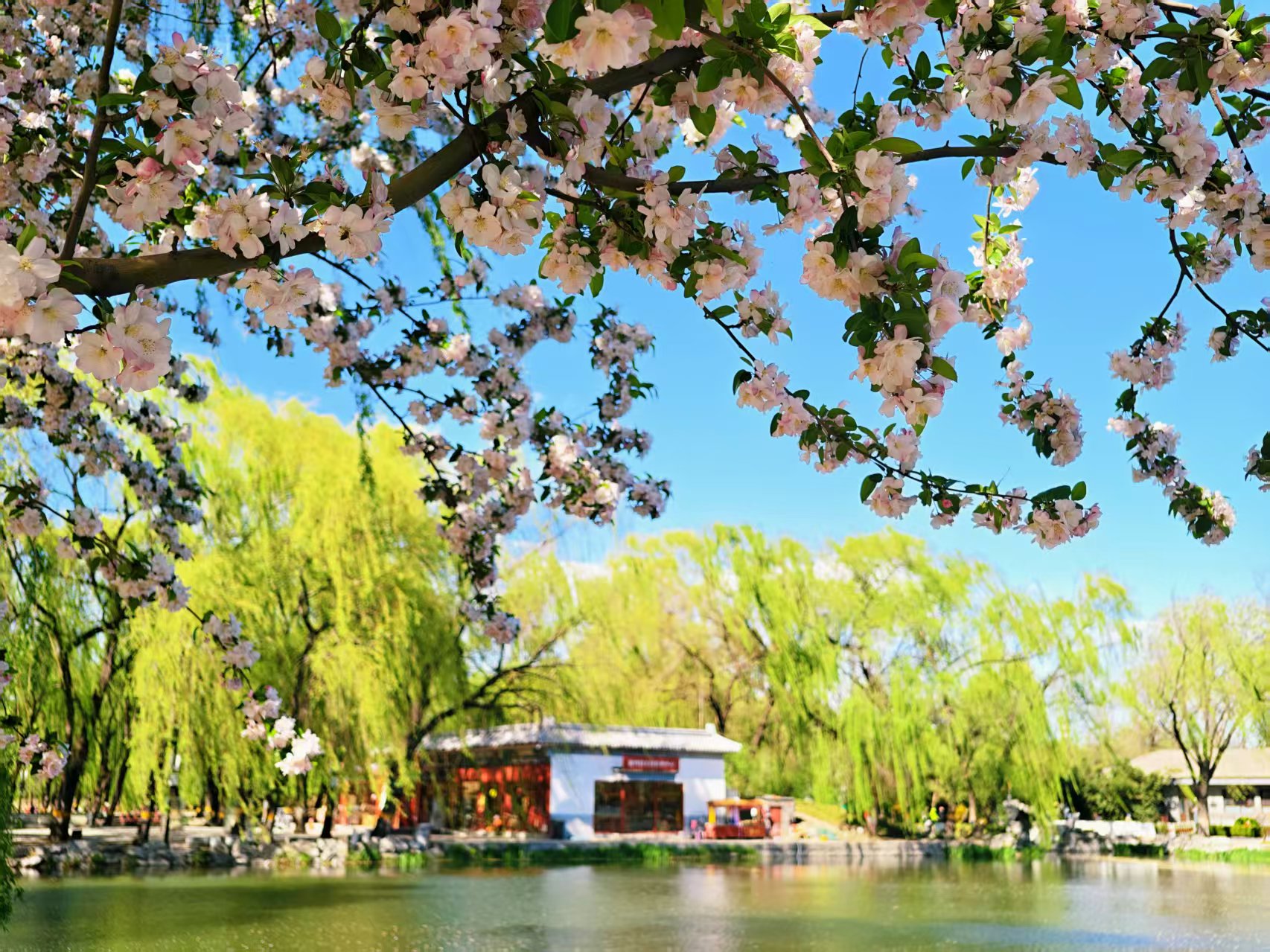 京城水波轻漾,绿树春花白云全来“打卡”啦!
