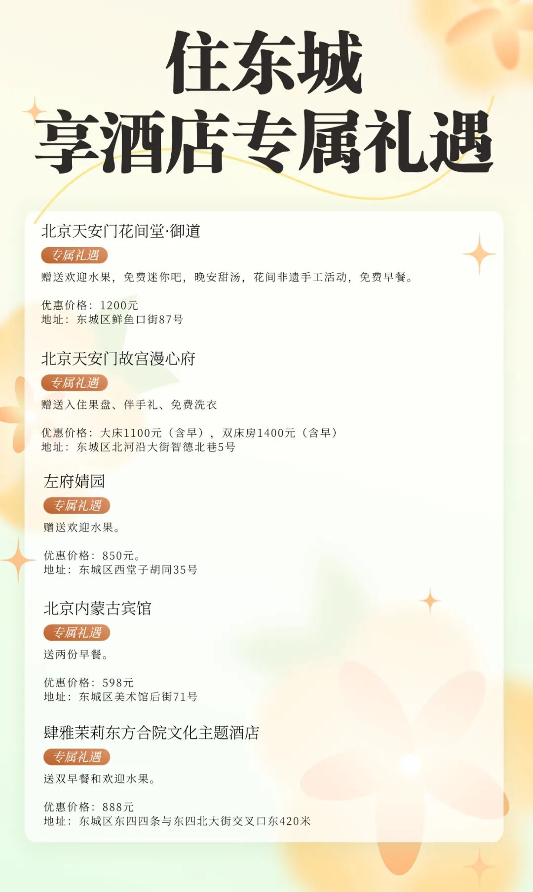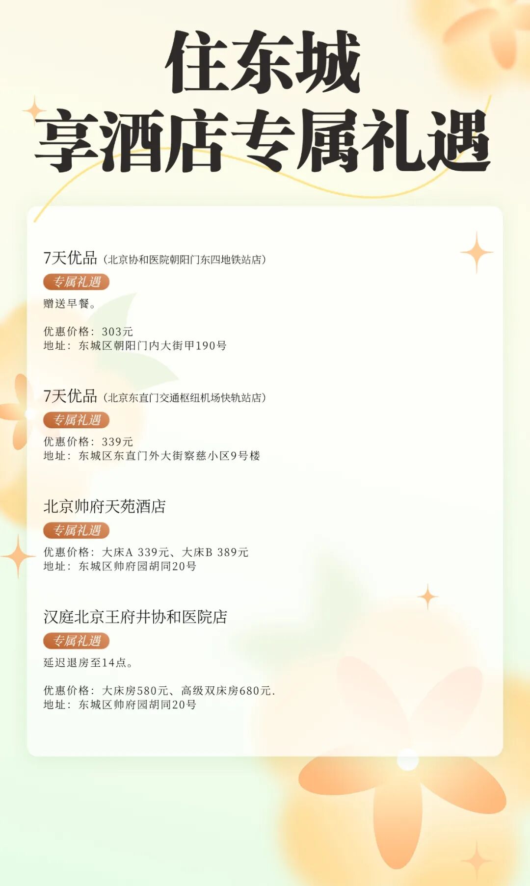 酒店专属礼遇活动
