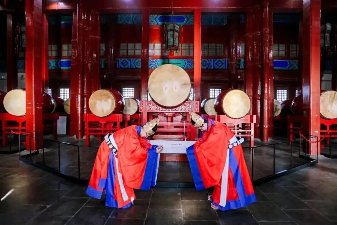 钟鼓楼是北京中轴线的北端地标,也是元明清三代的“时间管理局”。鼓楼二层藏着25面更鼓——1面主鼓管一年,24面群鼓管二十四节气。