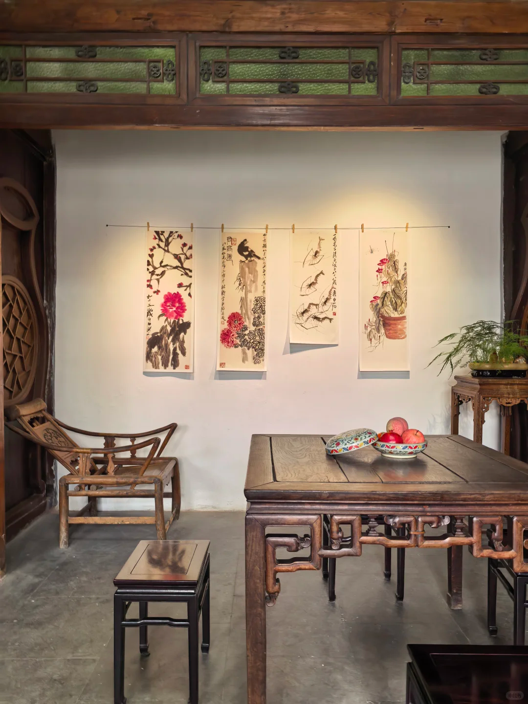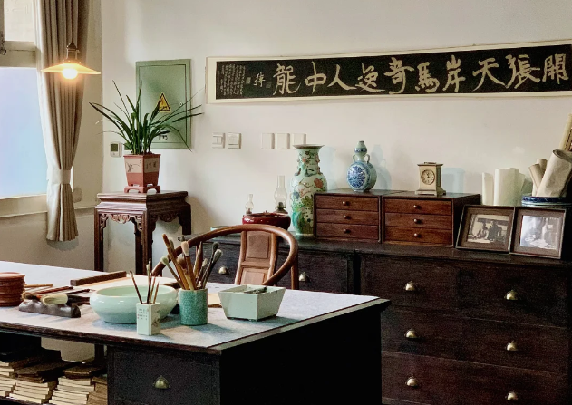 如今,北屋正屋恢复为客厅、画室、卧室,购置了旧式家具并配以齐白石生活照片,还原了大师晚年的生活场景。