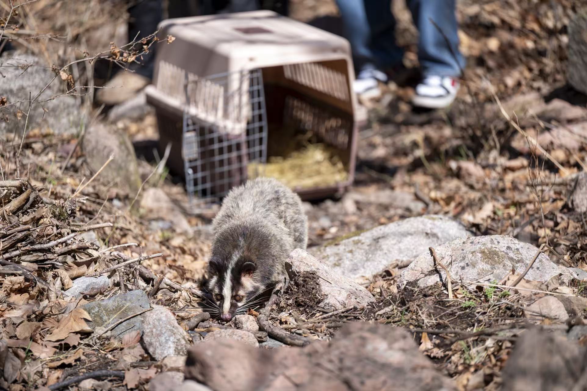 4月10日,在延庆区的松山国家级自然保护区,16只经过专业救护康复“出院”的野生动物被放归自然。其中,兽类包括中华斑羚、狍、豹猫、貉、果子狸5个物种,共计10只,是近三年北京规模较大、种类较全的一次兽类放归。同时,还有6只雀鹰等鸟类顺利重返山林。