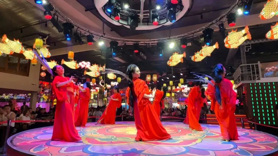 市场南侧的“阿淄烧烤·齐风淄宴”推出了沉浸式历史舞台剧《齐风淄宴》,每天午间和晚间精彩上演,演员生动演绎从姜子牙封齐到近代商埠风云,三千年齐文化如画卷展开。