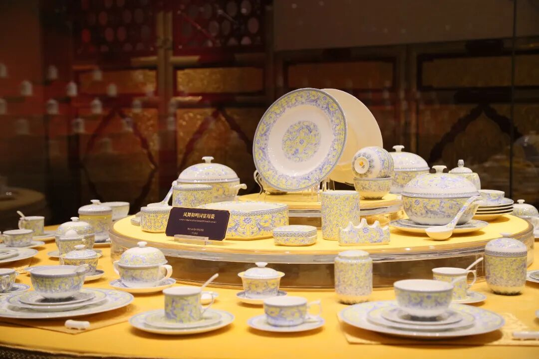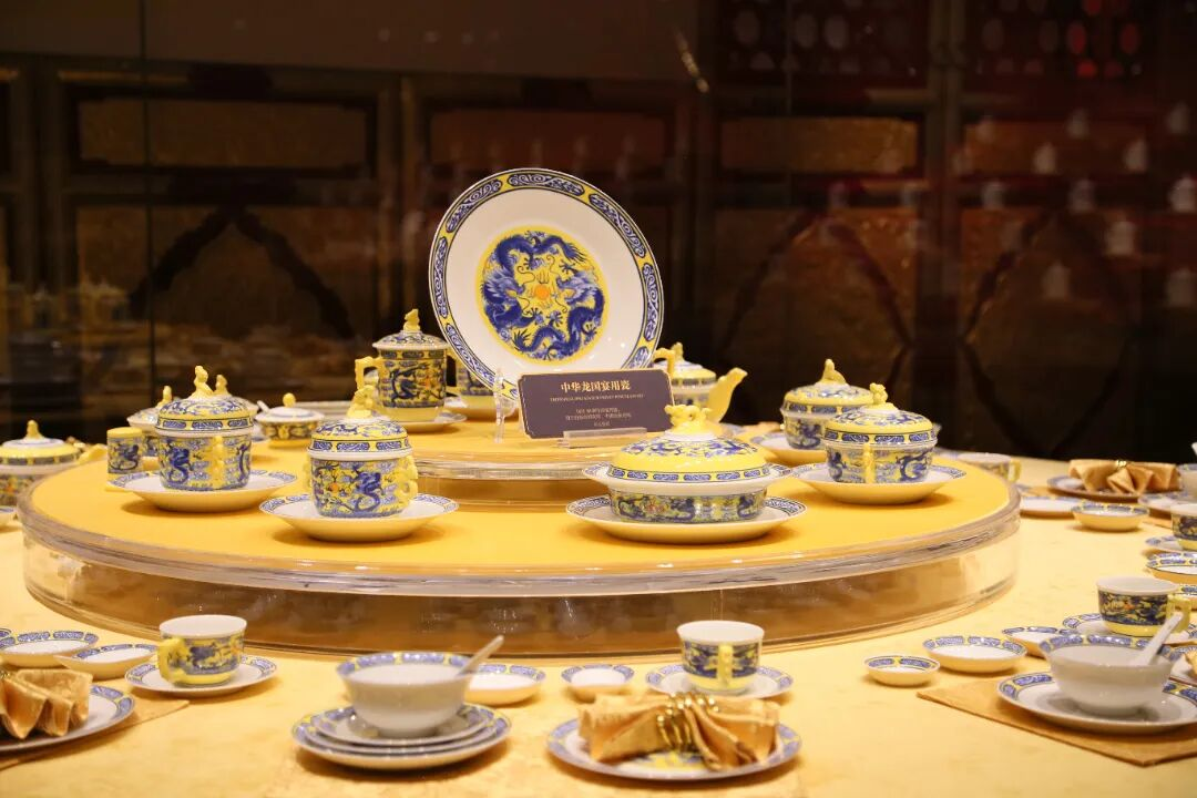 在古瓷厅隔壁的国窑厅,你可以看到国庆50周年国宴用瓷“中华龙”餐茶具,中南海紫光阁、人民大会堂专用的鲁光瓷餐茶具,每件瓷器,都是淄博陶瓷走向国家殿堂的见证。