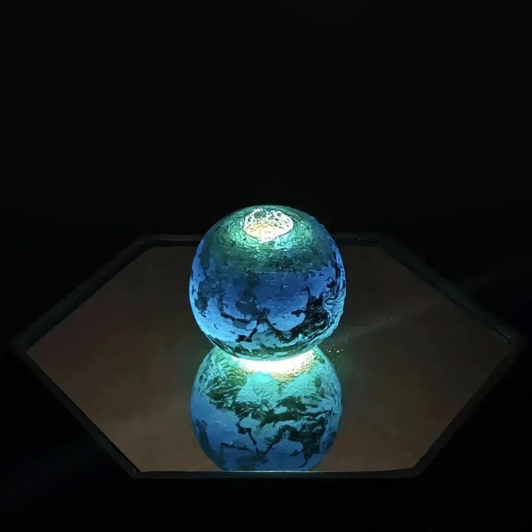 琉璃珠通体呈浅蓝色,珠壁上遍布白色斑纹,如同蓝天白云般快意洒脱,又挟千年风尘扑面而来,历经两千多年依然流光溢彩。