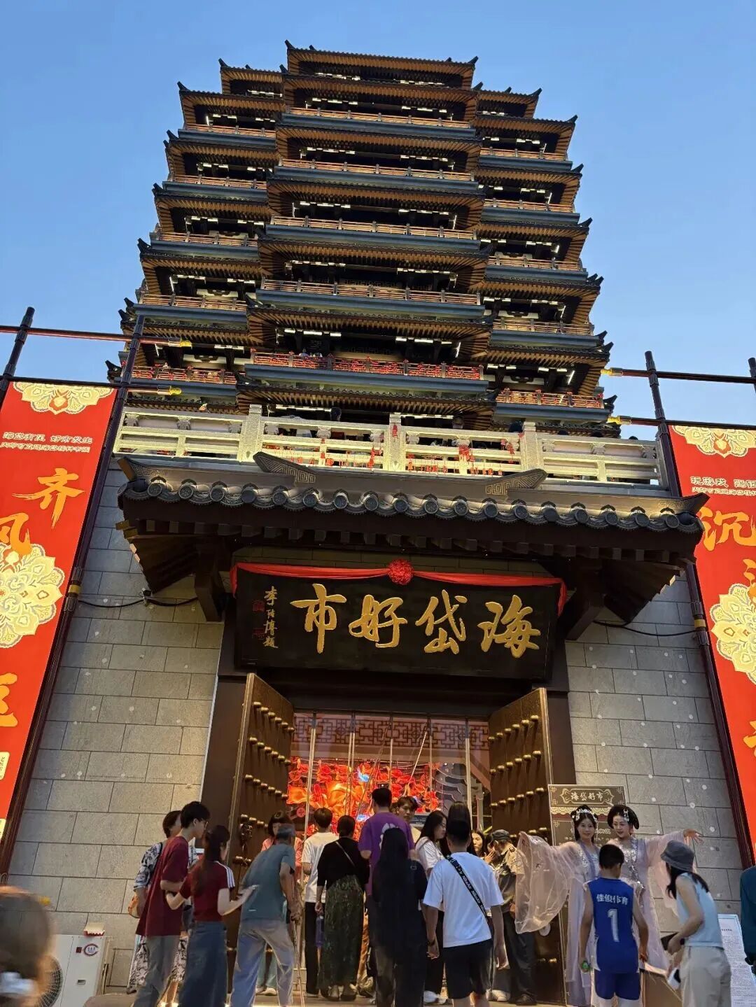 书香入海岱,潮起钟书阁,海岱楼矗立在淄博新区核心位置,九层飞檐、气势沉雄,白天是湖畔的风景,夜晚是城市的灯塔,楼内还藏着一家“中国最美书店”——钟书阁。