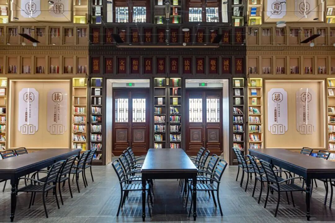 三楼城市书房安静雅致,你可以静坐阅读,也可凭窗远眺齐盛湖的碧波,这里还时常举办作家新书分享会等文化活动。