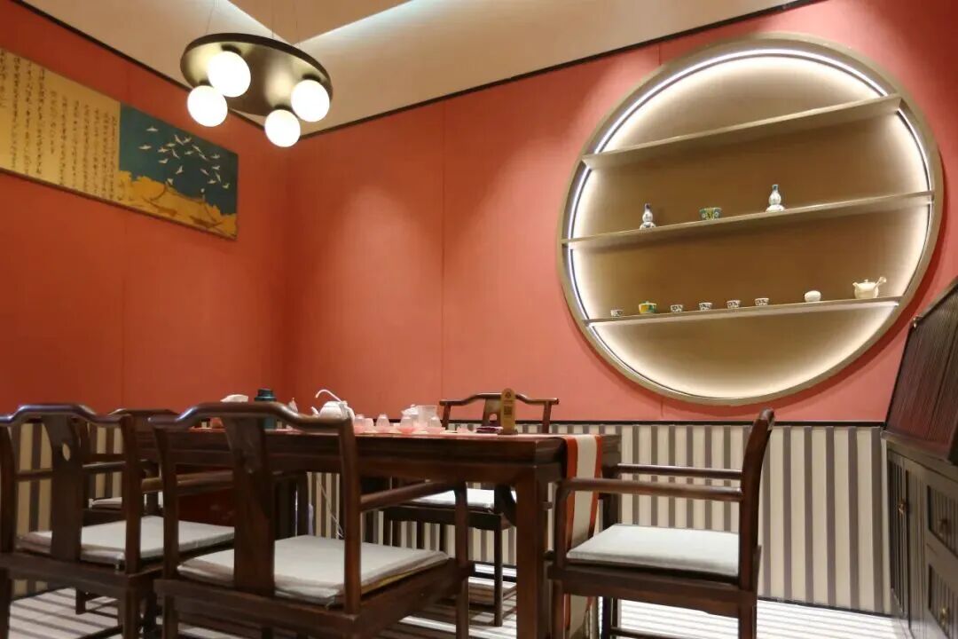 七楼茶研阁里可以品茗赏景,负一楼的壹餐厅和文创区同样别具匠心。