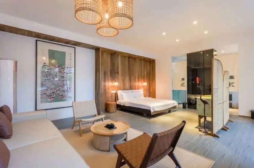 民宿有5间不同风格大小的客房,装修风格既有中式的留白意境,又配备了智能马桶、乳胶床垫等现代化设施。