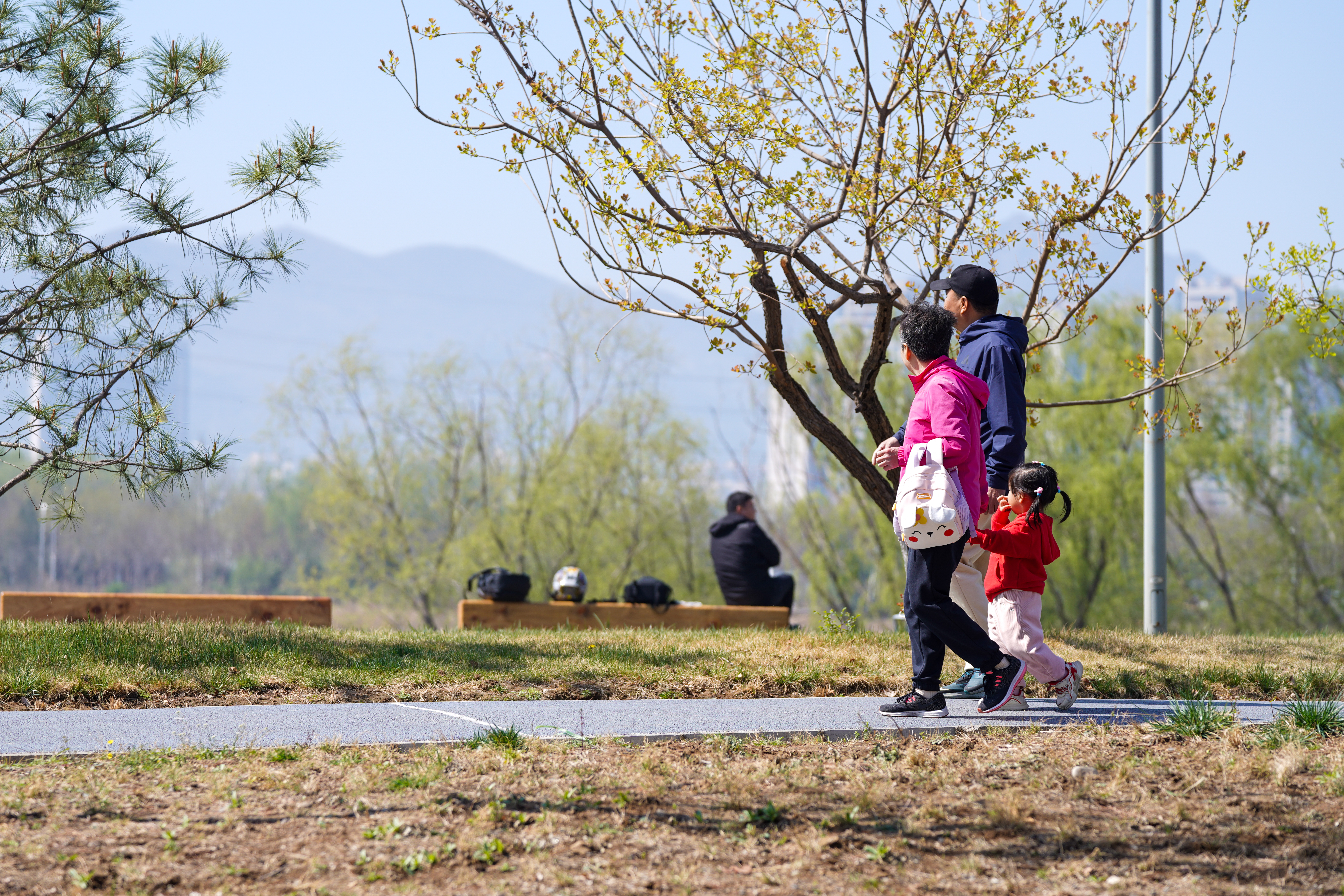4月10日,石景山永定河集已进入最佳观赏期,沿滨水步道漫步,郁金香、鲁冰花、小雏菊竞相绽放,花带沿河铺展,与远处的功碑阁、石景山首钢园高线公园构成独一无二的“赛博春天”背景板。随手一拍,就是工业风与自然美的碰撞大片。市民可以在草坪上与家人朋友嬉戏,或在花影下享受悠闲漫步。找一处河畔的休憩地,静静看流水、观花开、等夕阳,将春日的温柔尽收眼底。这才是石景山春日松弛感的正确打开方式。