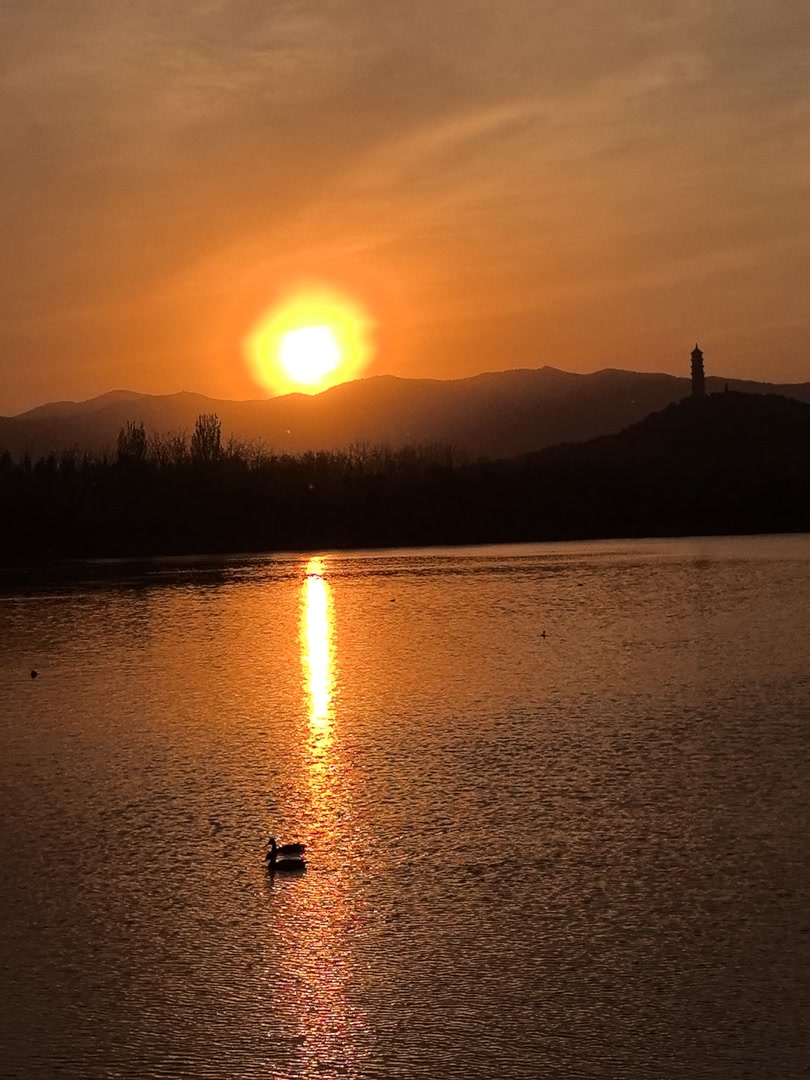 4月11日,北京的黄昏,落日熔金,染红天际,满目绚烂,尽是春日的热烈与温柔。