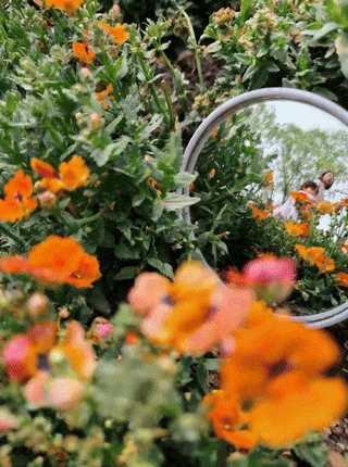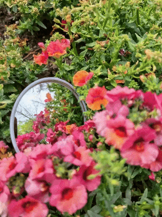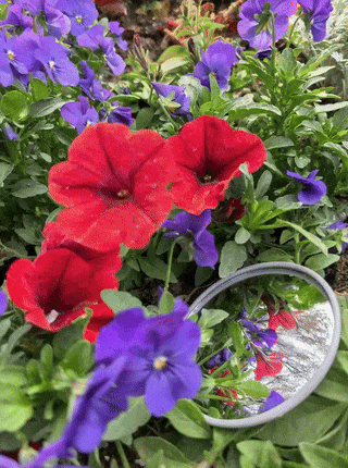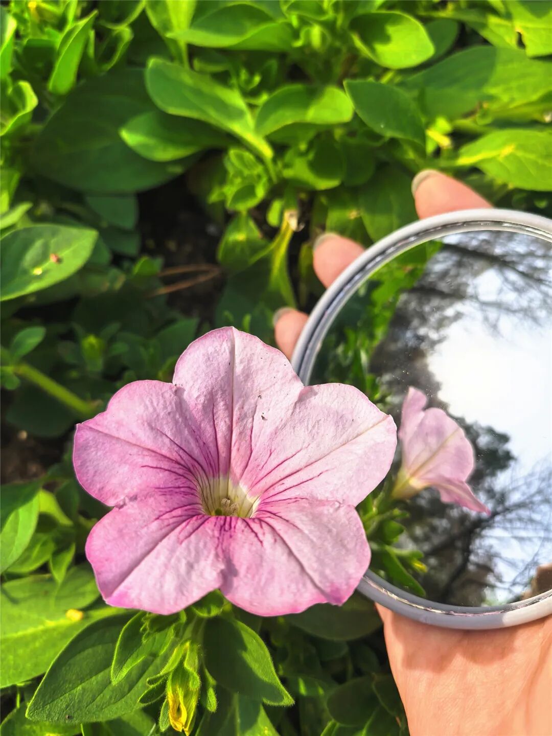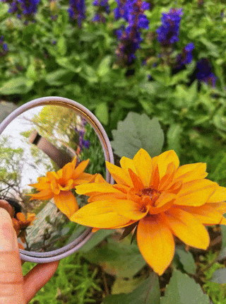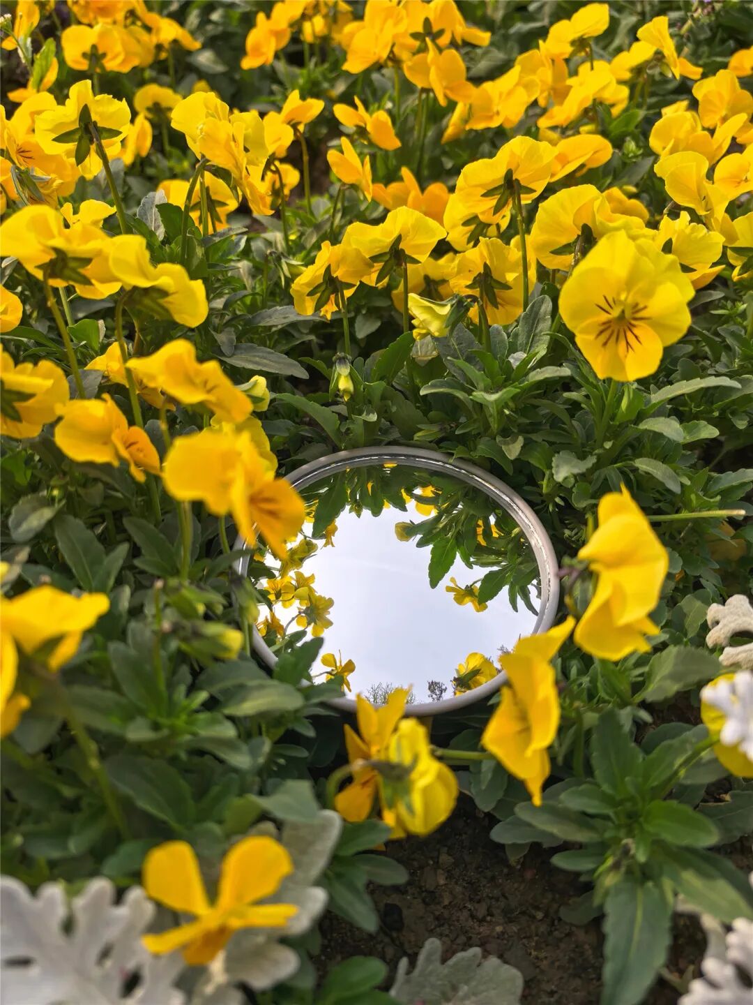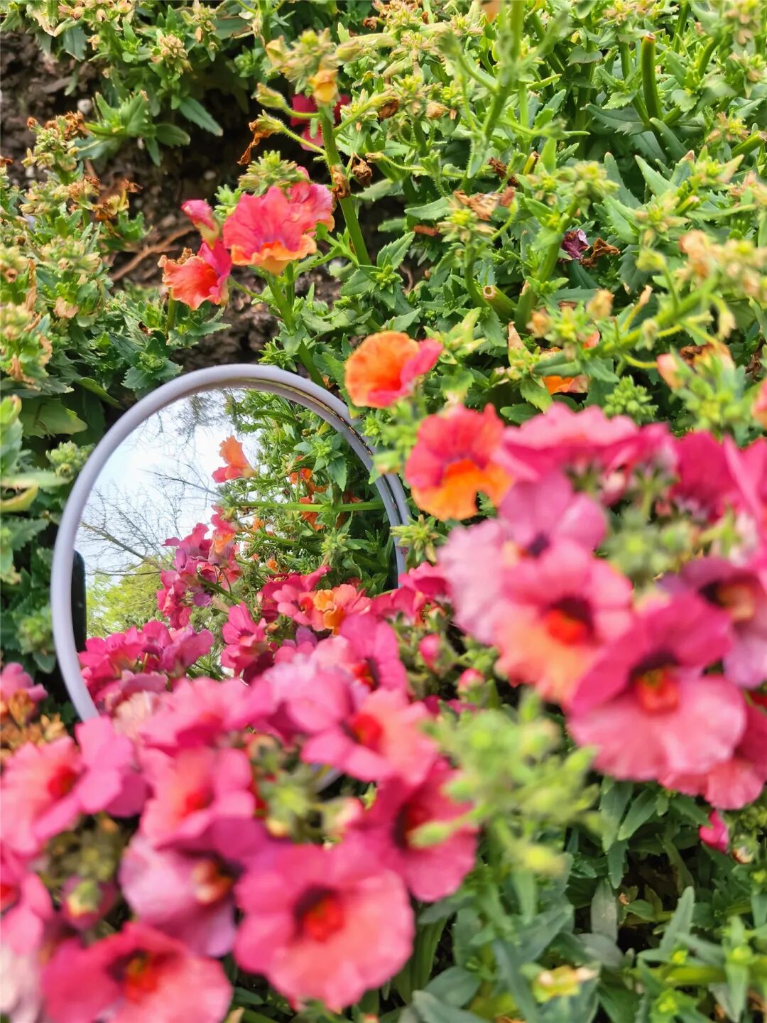 1️⃣ 将镜子轻放在花丛下,或者手持悬于花海之上;