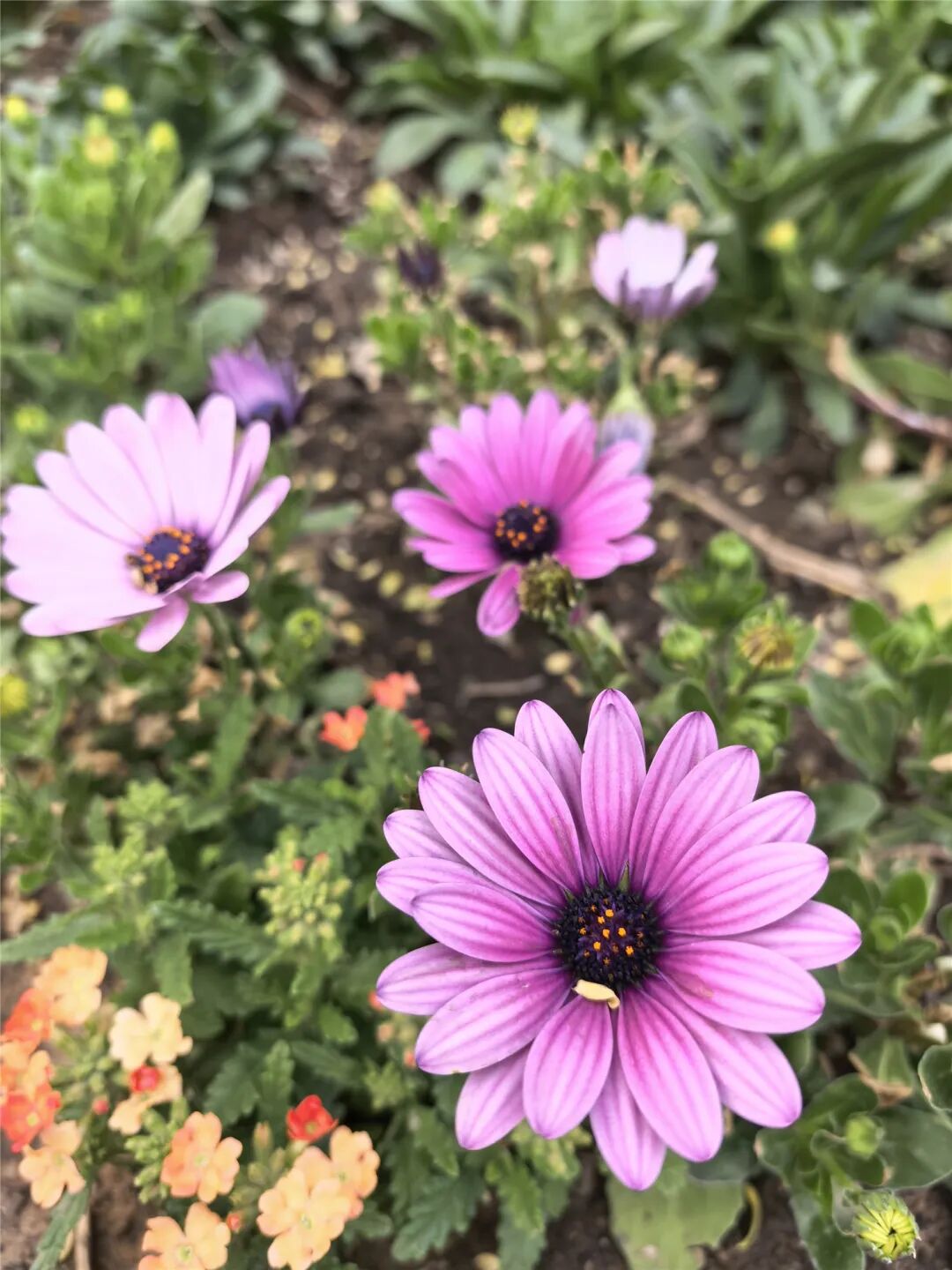 · 兔耳草、百日菊、波斯菊——油画质感浓烈