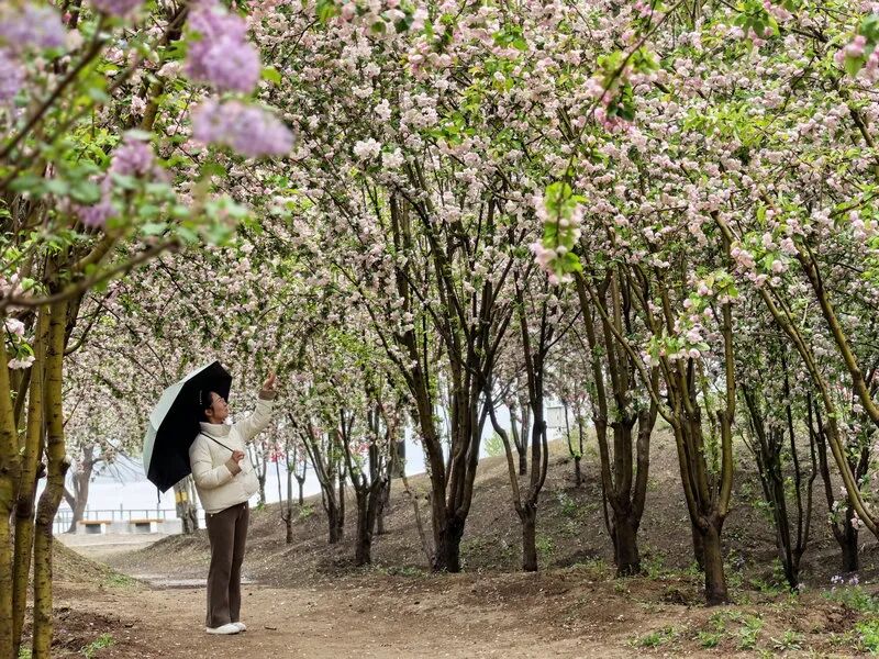 “圆明园从3月到5月可观赏到30余种花卉,早期有山桃、玉兰、迎春次第开放,眼下丁香、海棠、碧桃正值盛花期,4月中旬后牡丹陆续绽放,随后芍药接力登场,游客可全程感受不同花卉带来的春日盛景。”圆明园管理处宣传科科长余娜介绍,踏青节以花为媒,让历史遗址与自然春色相映成趣,让市民在赏景漫步中感受春日韵味。
