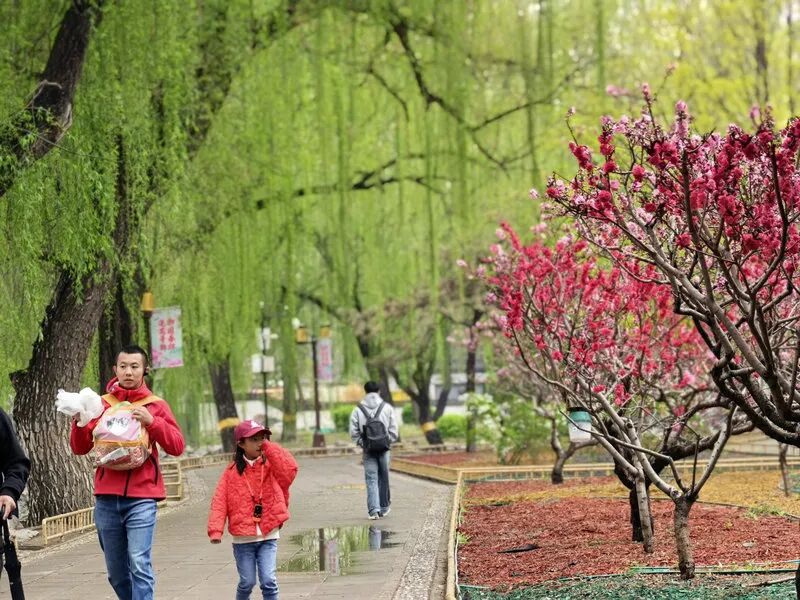 从3月中旬至今,山桃、碧桃、迎春、玉兰相继盛放。在武陵春色、月地云居一带,粉白桃花沿溪舒展,锦鲤游弋于花影之间,勾勒出“花溪锦鲤”的诗意秘境;4月中下旬,山高水长景区的紫白丁香迎风摇曳,香气沁人心脾;谷雨之后,镂月开云、含经堂、藻园三大牡丹观赏区将迎来盛花期,雍容华贵的牡丹呼应四月花神,成为历年游客最为青睐的打卡胜景之一。