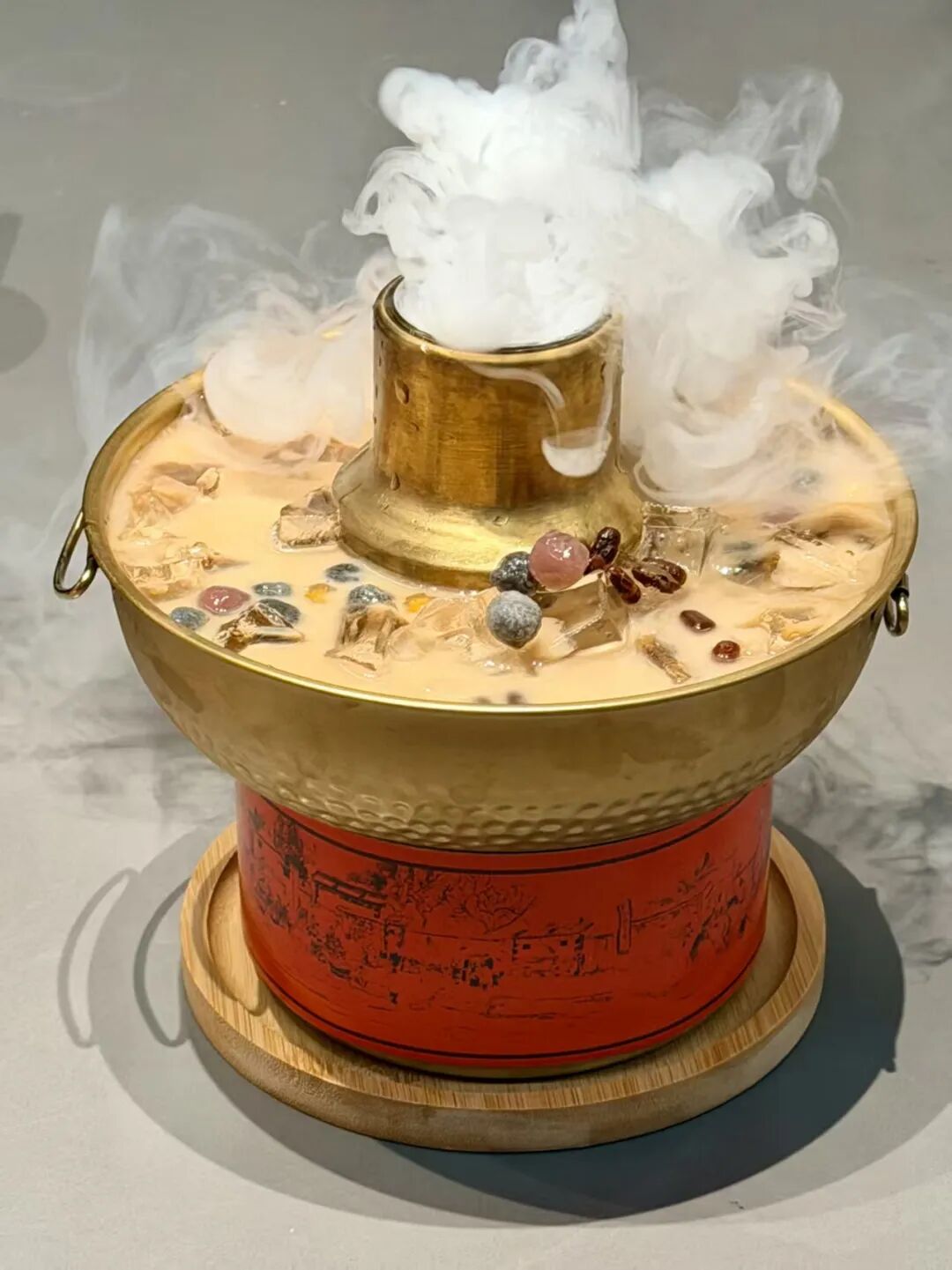 纯金铜锅造型 + 仙气干冰效果