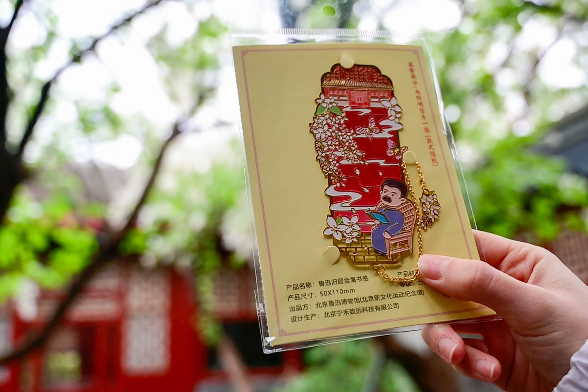 工作人员介绍,一款鲁迅旧居金属书签很受欢迎。它以红窗为骨架,垂落的丁香花枝与翩飞蝴蝶环绕Q版鲁迅,再现他在丁香树下读书的场景。观众俞先生一次购买了5个,他说:“这款书签设计很有新意,附赠的明信片也很用心,描绘的是旧居的春日景色。我自己留一个当纪念,剩下的都送给朋友,一定能吸引他们也来实地看一看。”