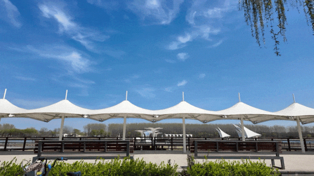 在公园中骑行,两侧是成片树林。骑行在潮白河畔,春风拂面,阳光透过树叶洒下斑驳光影,空气里有青草与泥土的清新。路过儿童游乐区,能听见孩子们的欢笑声——这里也是家庭周末出游的宝地。骑累了,找张长椅坐下,看河水缓缓流过,时间也跟着慢下来。