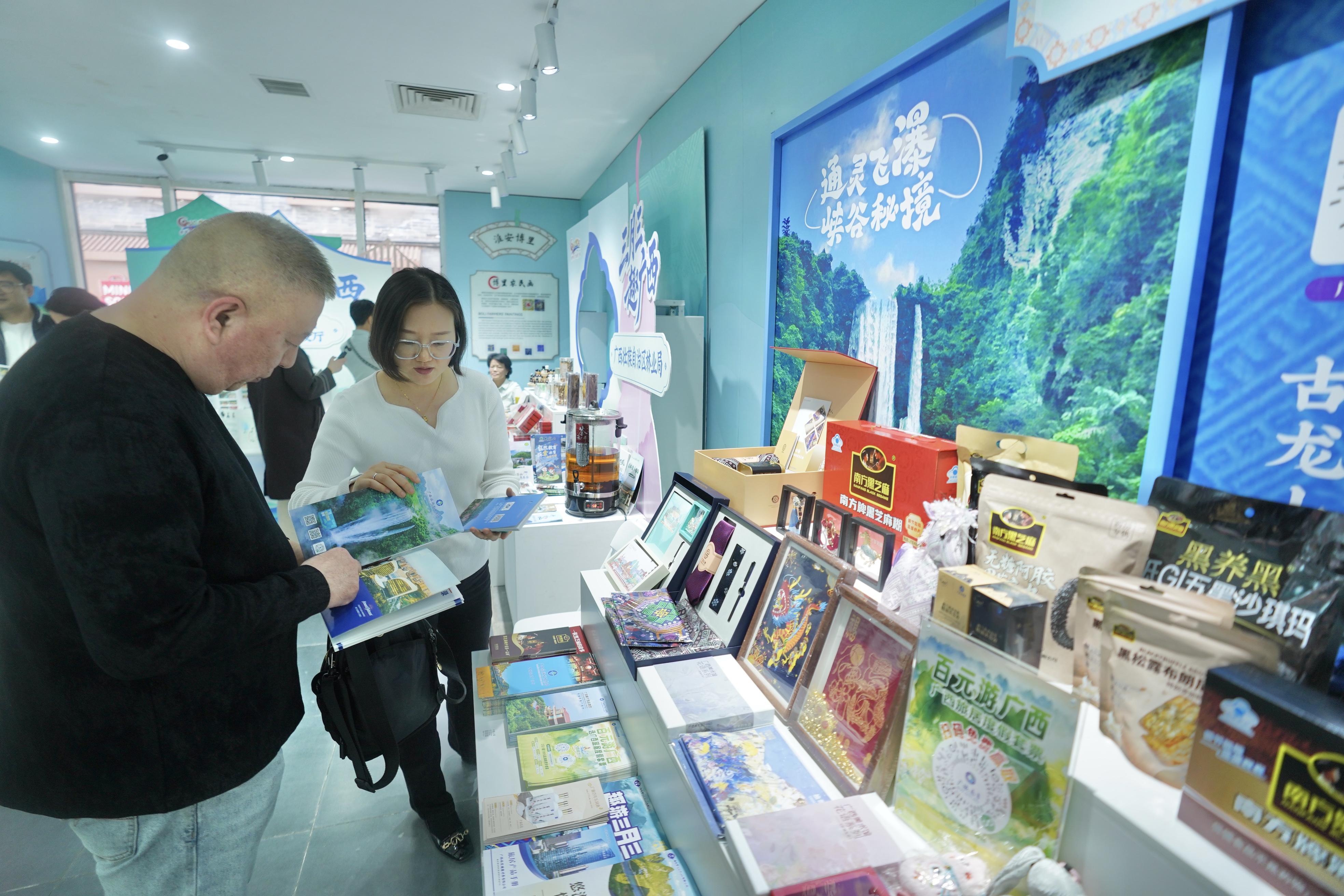 现场集中展示壮锦、坭兴陶、民族银饰、竹编、漆器等非遗精品,贝雕、角雕、六堡茶、油茶等非遗传承人现场展演技艺,螺蛳粉、五色糯米饭、钦州海鸭蛋、各类应季水果等特色美食集中亮相,让京城市民沉浸式体验壮乡风情。广西14市文旅资源、康养旅居、地理标志农产品、民族体育、北部湾邮轮旅游、“一键游广西”智慧文旅等优质资源同步亮相,全方位展现壮美广西的独特魅力。