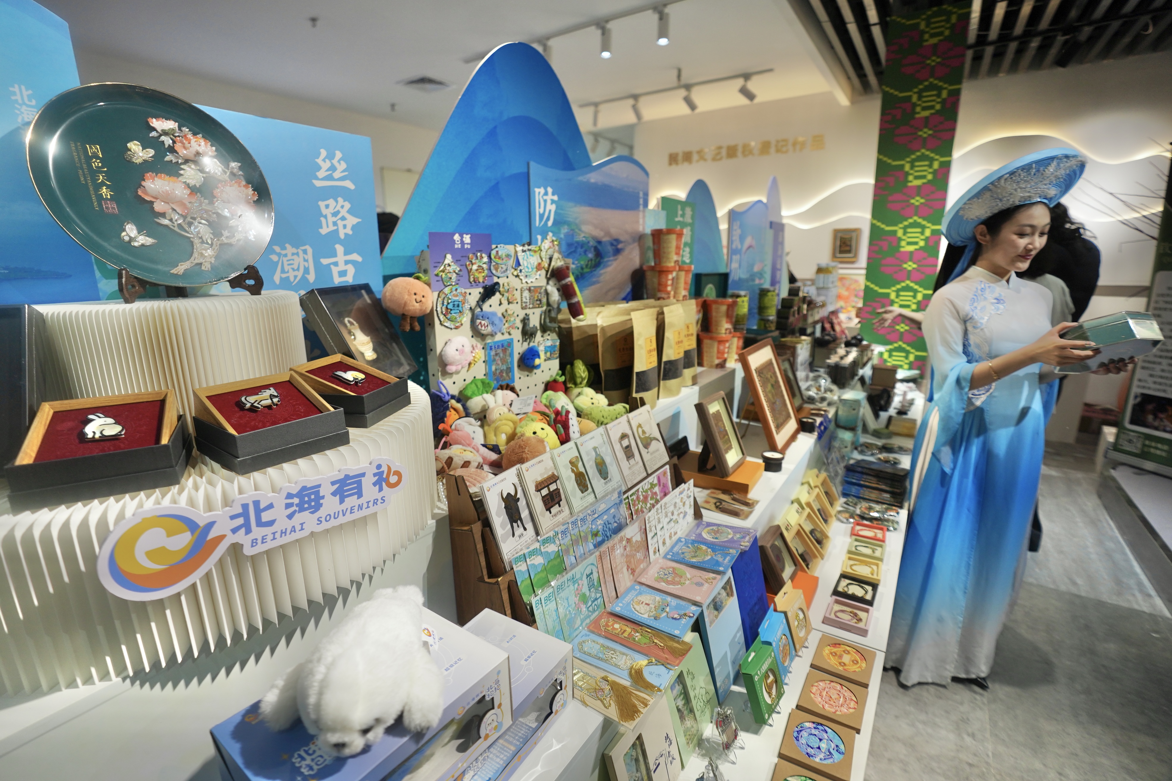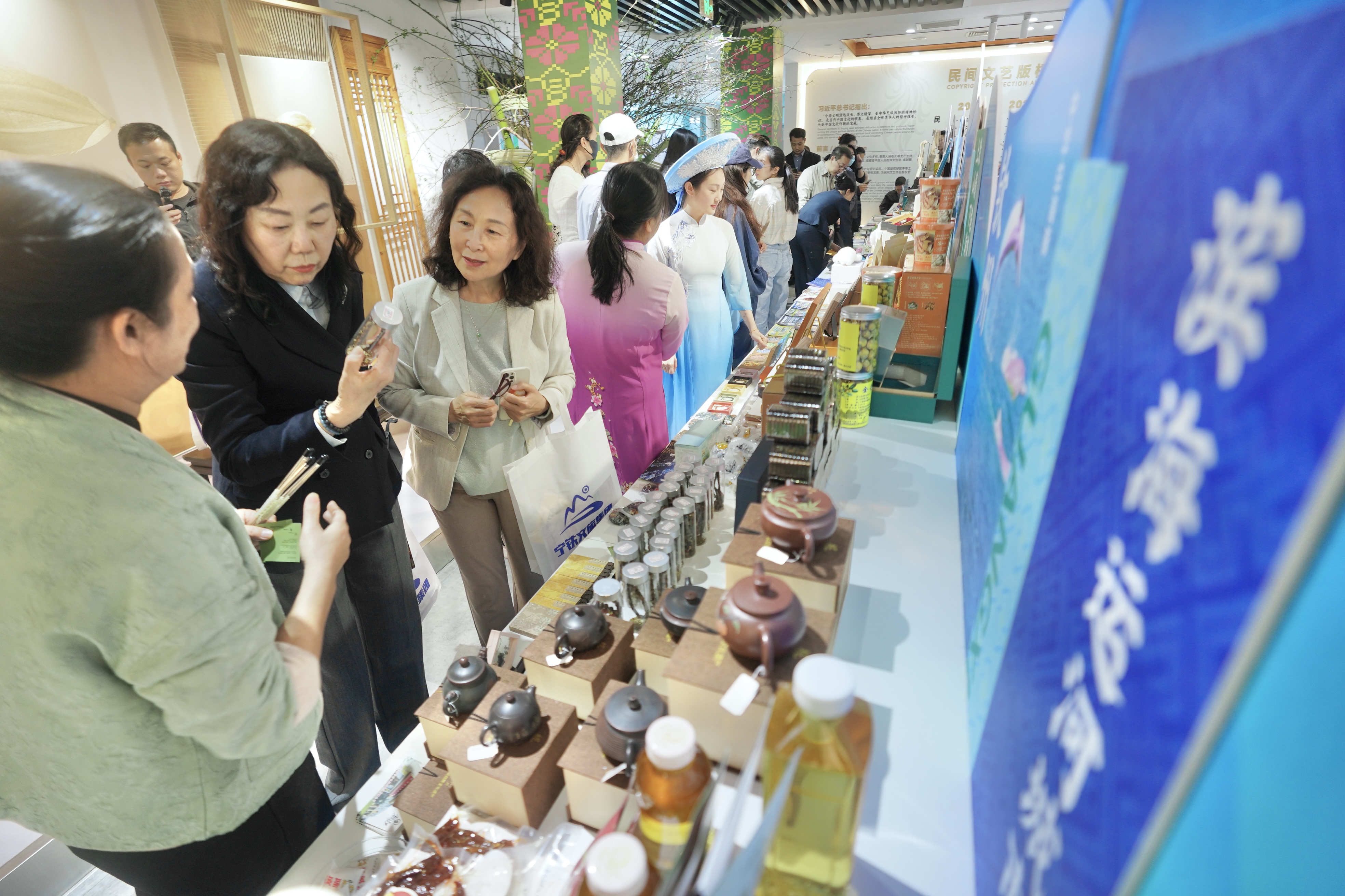 4月13日至6月30日为常态化展销期,展出角雕、壮锦、坭兴陶等民间文艺好物,特色文创与美食持续展销,打造广西民间文艺在京常态化展示窗口。