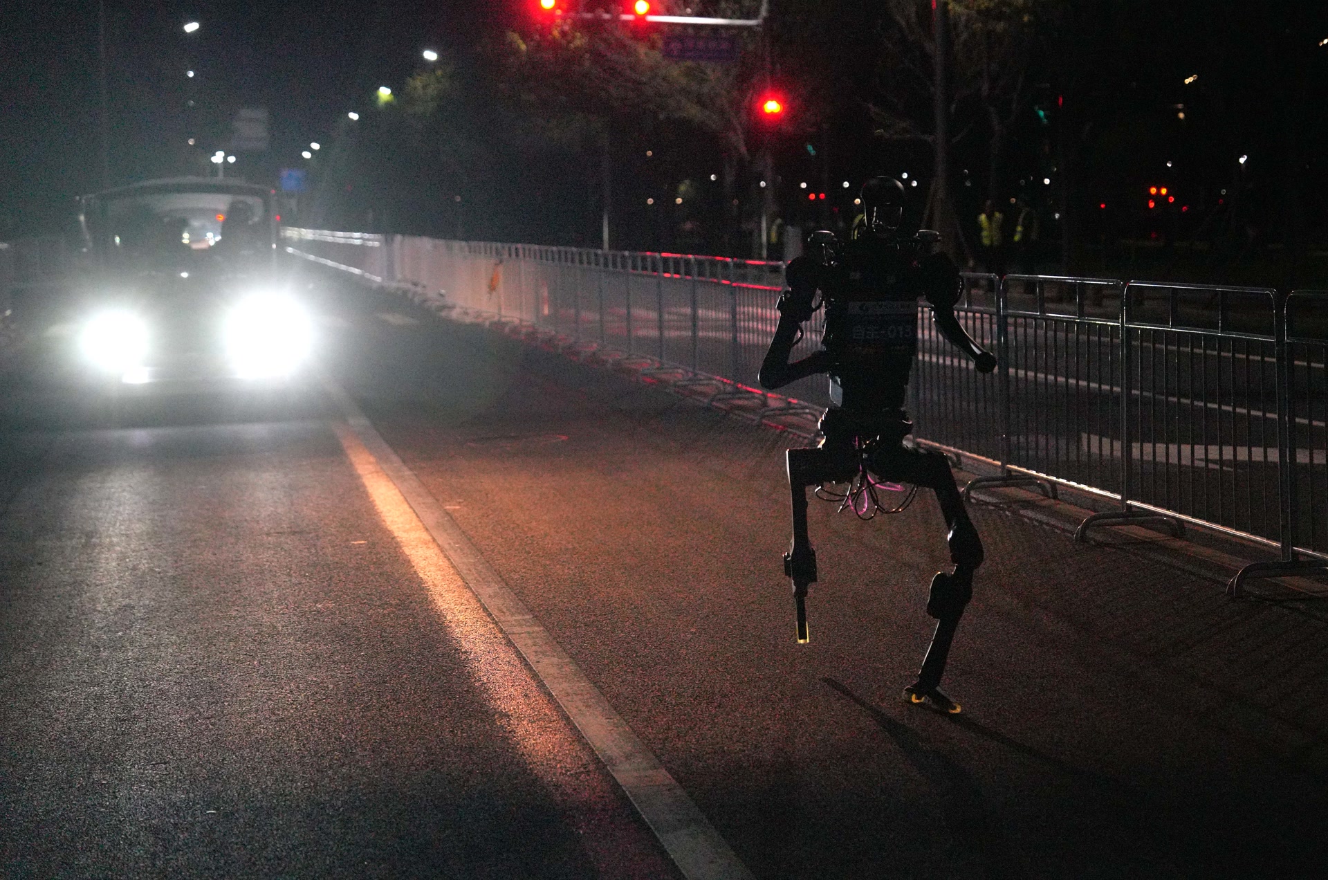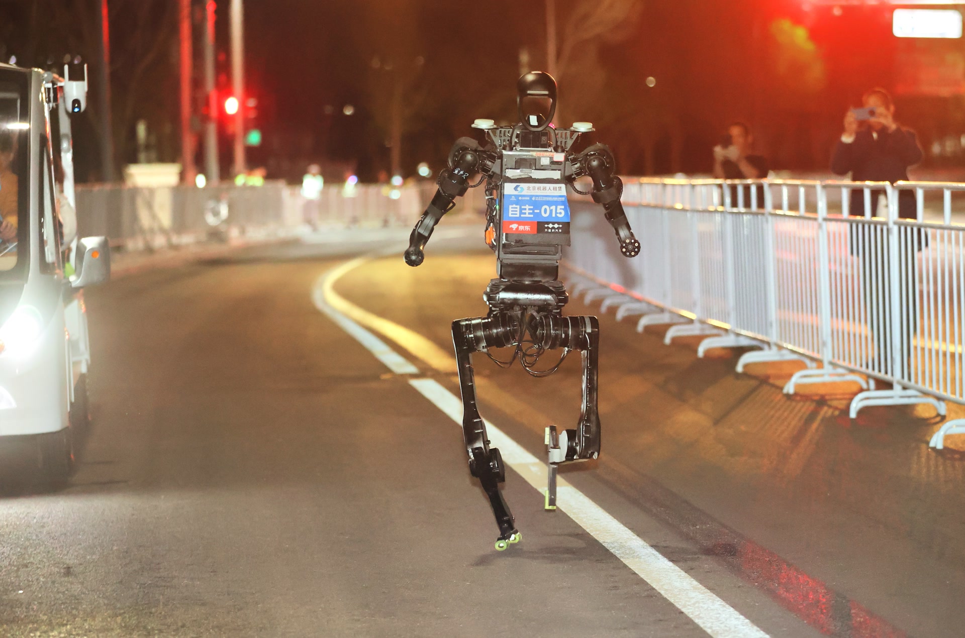 半马测试赛场上,H1一袭黑装,跑起来保持很强的冲劲儿。在一些路段上,它一度超越了多辆保障运行的电瓶车。“我们在续航等方面进行了调整,从而应对马拉松路途比较长、有坡有弯等情况。”初阳说,对机器人来说,此次测试的路段是比较陌生的,天气情况、夜晚能见度等都有一定影响,后续赛队会根据结果进行调整。