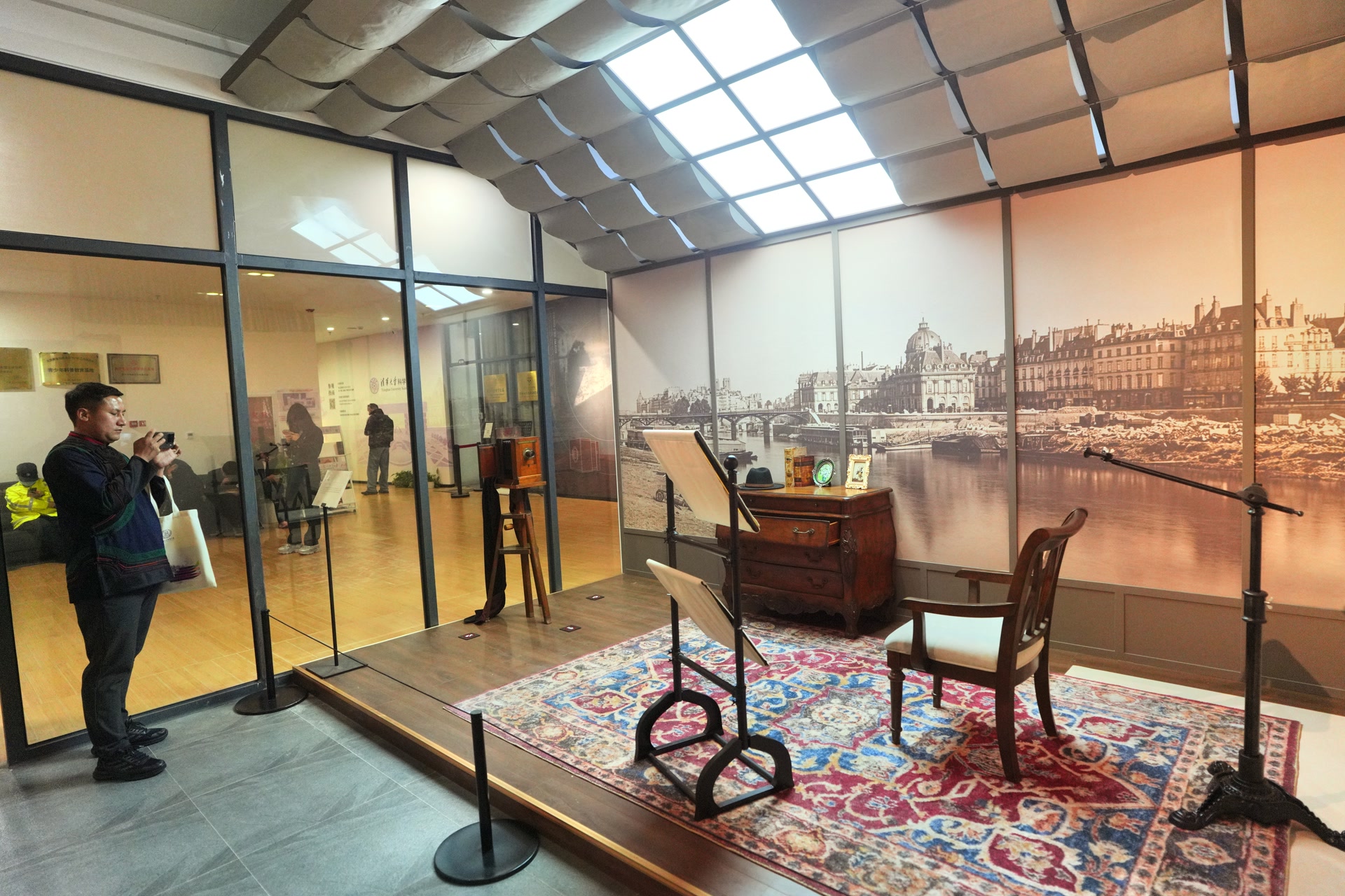 该馆位于清华校园东侧,美术学院大楼与清华艺术博物馆之间,建成前在校内蒙民伟人文楼设临时展厅。最新入藏的照相机就正在“化影写真——古典相机与科学摄影的诞生暨尼埃普斯《勒格拉的窗外景色》200周年纪念展”上展出。