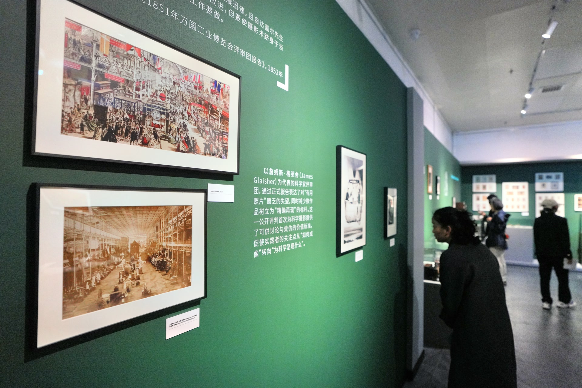 一些照相机存世较少,难得一见。策展人柳紫陌举例,一件19世纪初的帐篷式暗箱是照相机的雏形。“帐篷顶部伸出一个镜头,内置兼具透镜和反光镜功能的可调节棱镜,用于投射,帮助使用者描摹外部影像。它虽不能永久记录图像,但实现了实时、可移动、可操控的光学成像,为后续照相机的光学系统和便携设计提供参考。”还有一台复制品,还原了200年前拍摄世界上现存最早照片《勒格拉的窗外景色》的暗箱。