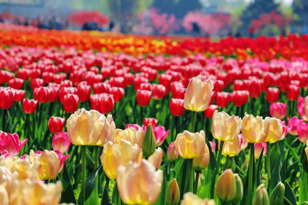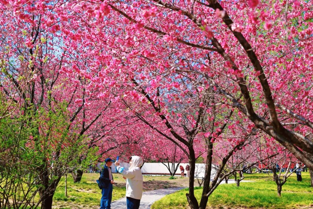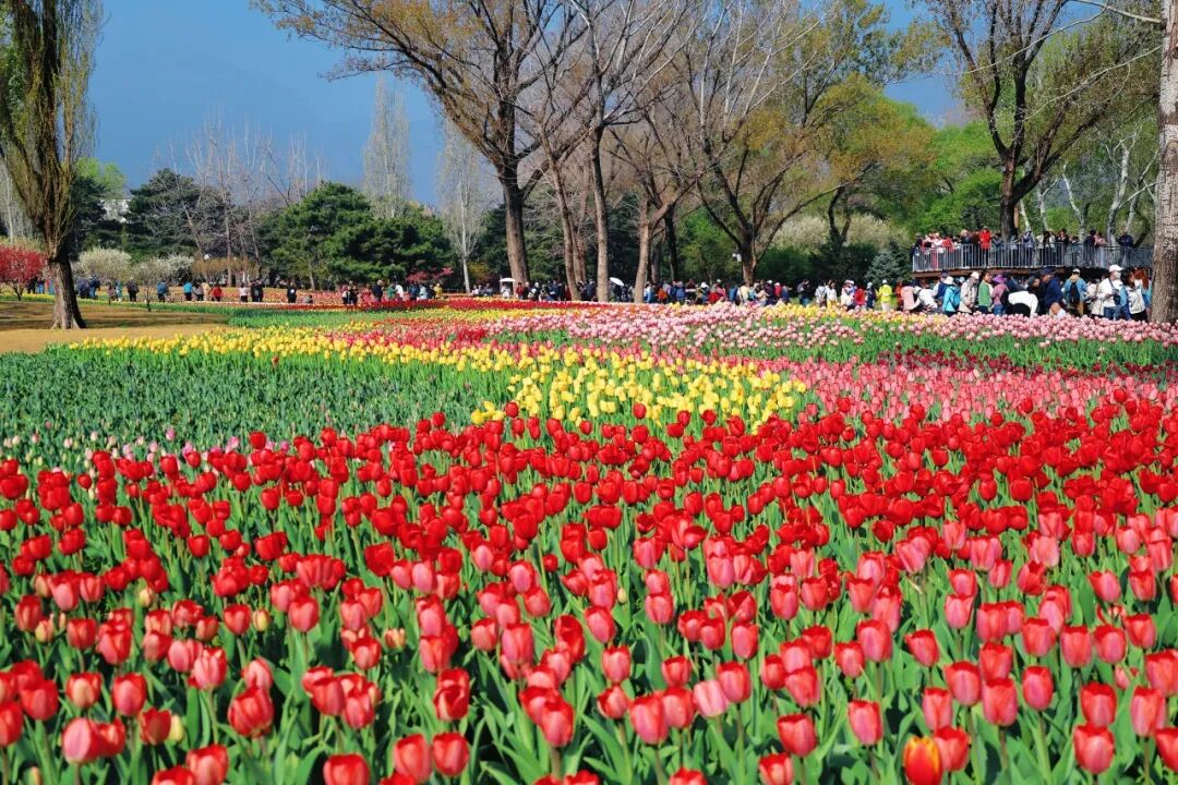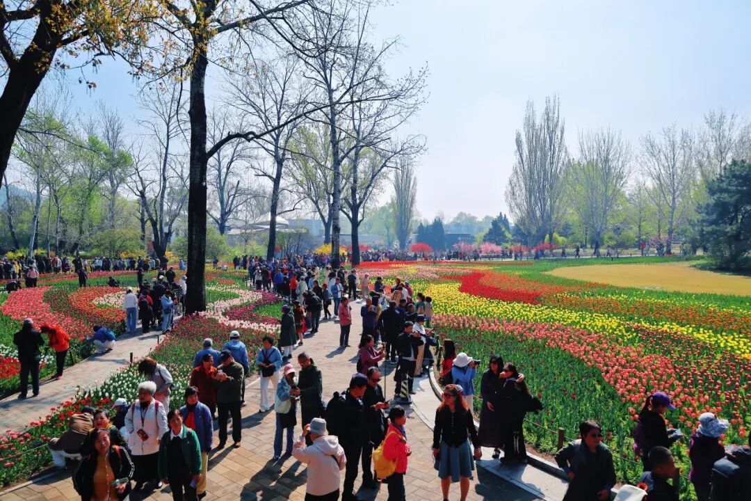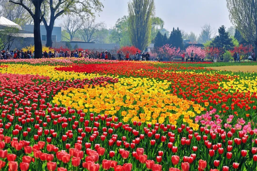 微风和煦,春色正浓。国家植物园(北园)的春意藏不住,一片浓烈的色彩铺展开来。