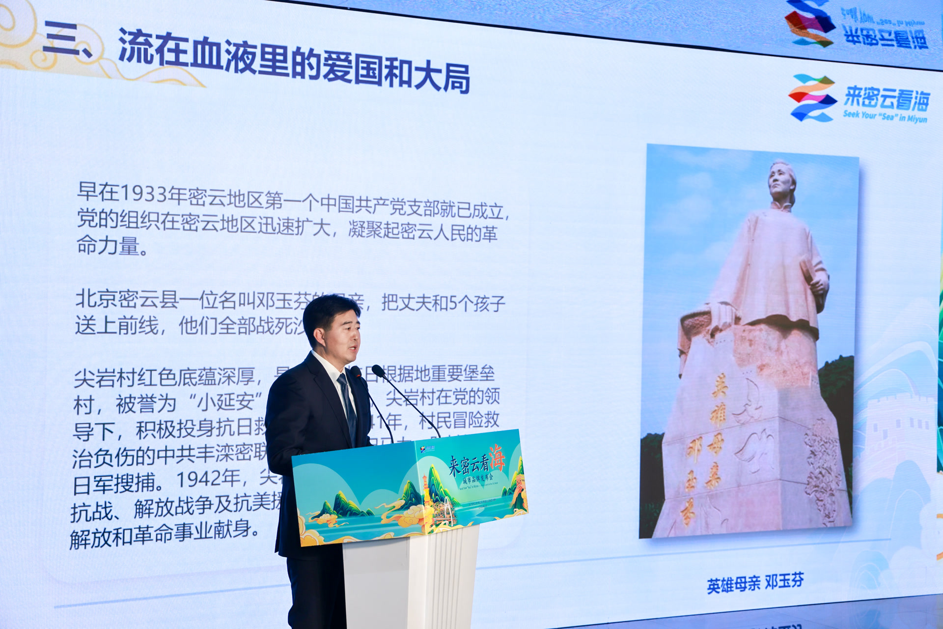 密云区政协副主席宋印双则回顾了密云水库建设与守护的厚重历史。他介绍,为修建水库,库区百姓先后经历三次大规模搬迁、七次小规模搬迁。此后,密云严格落实水源保护条例,关工厂、清退网箱、禁养畜禽,护水人世代接力。“古北口长城抗战、‘英雄母亲’邓玉芬、‘小白龙’白乙化……这片红色热土上流淌着家国情怀,正是‘无私奉献之海’最动人的底色。”宋印双说。