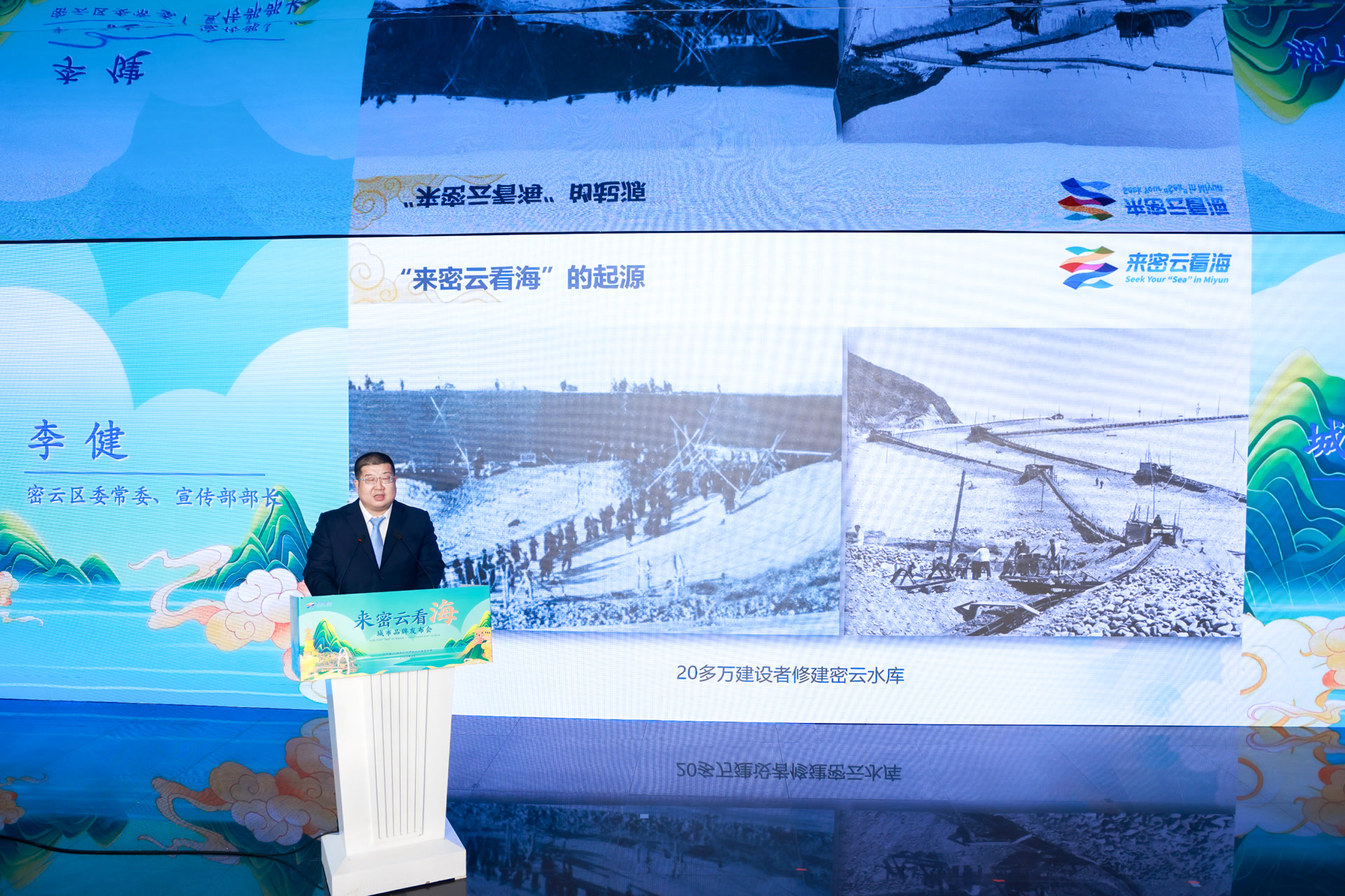 发布会上,密云区委宣传部部长李健系统阐释了“来密云看海”的品牌内涵。他介绍,“看海”并非地理意义上的海滨之旅,而是三重意蕴的叠加:看的是秀美风光之海——密云坐拥华北最大人工湖密云水库,碧波万顷胜似海景;看的是无私奉献之海——密云人民60余年“舍小家、顾大家”守护首都生命之水;看的是博大胸怀之海——密云自古商贾云集、人文荟萃,如今正以开放姿态广纳八方客商。他表示,品牌LOGO以书法“云”字为核心,负空间暗藏鱼跃、日升意象,宣传片以国际化镜头语言传递生态之美与奋进之力,“希望每个人都能在密云遇见独属于自己的那片蔚蓝”。