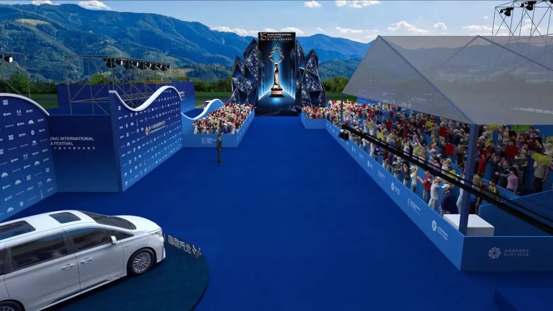 打破传统红毯定式,本届北影节开幕入场仪式以京杭大运河碧波为灵感,将“运河蓝”定为专属主色调,让流淌千年的运河文脉,成为星光舞台的最美底色。蓝色,是运河奔涌千年的灵动本色,承载着包罗万象、滋养文明的文化底蕴;更是北影节面向世界的全新视觉语言,将运河意象与电影节特质深度绑定,打造独一无二的视觉标识,让千年水韵在光影之中焕发新生。