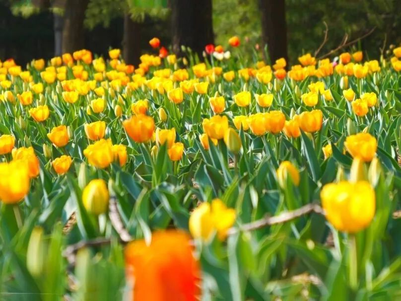 四月,石景山繁花不断,家门口的郁金香开好了——约2万株郁金香铺成“多巴胺花毯”!详情>>