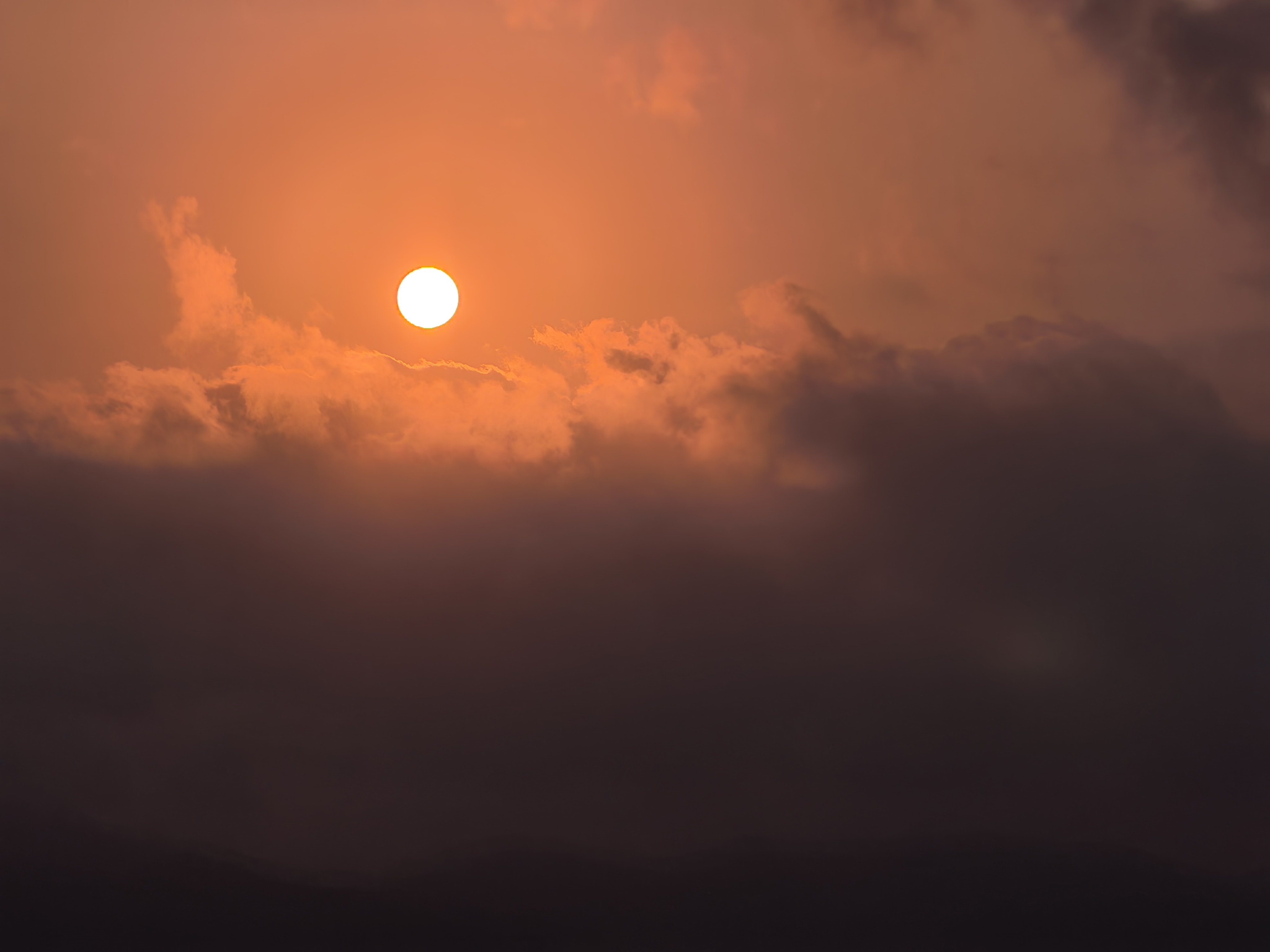 我看到了令人难忘的色泽——火红的橘红色。那不仅仅是一种颜色,那是一种流淌的、滚烫的情绪。太阳似乎积蓄了所有的力量,猛地挣脱了海平面的束缚,露出了小半边脸。那一瞬间,它不再是温和的,而是充满着野性与力量。光与影在这一刻达到了极致,整个世界仿佛都被这火红点燃。