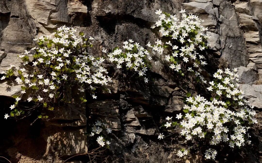 在北京几处静谧的悬崖峭壁间,积蓄了一冬暖阳的槭叶铁线莲,正在和煦的春风中集中绽放。含苞待放的呈红粉色,花瓣全部舒展的呈白粉色,微风吹拂,花枝摇曳,宛如悬于绝壁间的花瀑,婉约动人。槭叶铁线莲被誉为“崖壁精灵”,与独根草、房山紫堇并称“崖壁三绝”,以绝壁生根、凌空绽放的姿态,彰显着顽强的生命力,凭借独特的科研与生态价值,成为首都珍贵的自然瑰宝。