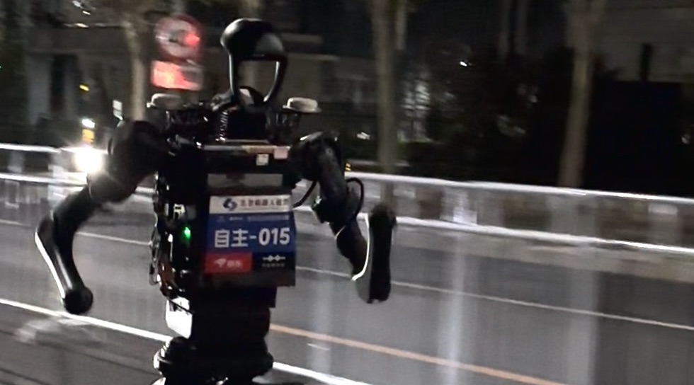 北京人形机器人半程马拉松进行全流程全要素测试。记者跟车拍摄机器人跑步,本以为车速足够,没想到竟接连被机器人超越!详情>>