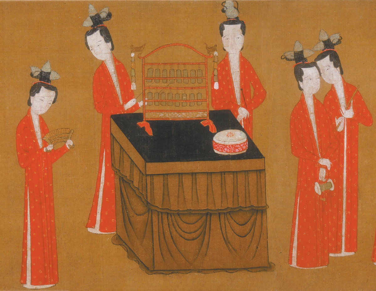 南宋佚名《歌乐图》身穿红褙子的乐伎