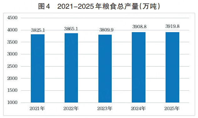 全年粮食播种面积9691.5万亩,比上年增加1.2万亩,比上年增长0.01%。其中,夏粮播种面积3429.6万亩,增长0.4%;秋粮播种面积6261.9万亩,减少0.22%。粮食总产量3919.8万吨,比上年增加11.1万吨,增长0.3%。其中,夏粮产量1530.9万吨,增长1.2%;秋粮产量2388.9万吨,下降0.3%。