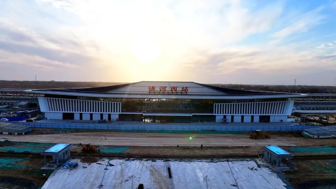 近日,雄商高铁清河西站站前的客运枢纽中心、旅客服务中心等配套工程主体结构完工,进入装饰装修与机电安装阶段。