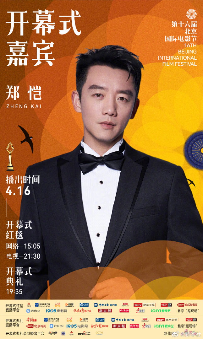 第十六届北京国际电影节发布开幕式首波嘉宾,陈楚生、陈建斌、董璇、韩庚、贺峻霖、李乃文、刘雨昕、马丽、沈腾、沙溢、舒淇、王祖蓝、魏翔、许魏洲、尹正、郑恺、周冬雨等将在开幕式亮相。