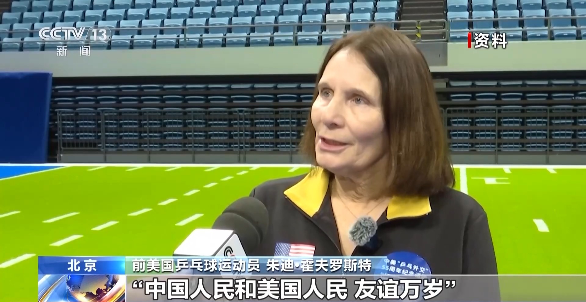 前美国乒乓球运动员 朱迪•霍夫罗斯特:在一万八千名观众面前比赛,那场面令人激动。他们为我们鼓掌,打出好球时,他们就会喝彩,气氛十分热烈友好。我当时学会的中文是“中国人民和美国人民友谊万岁”。其他回忆就是游览长城,还去了颐和园。那时只有15岁,就像一块海绵不断吸收着一切。这段经历让我对中国产生了毕生的兴趣,所以我会尽一切可能去了解中国。