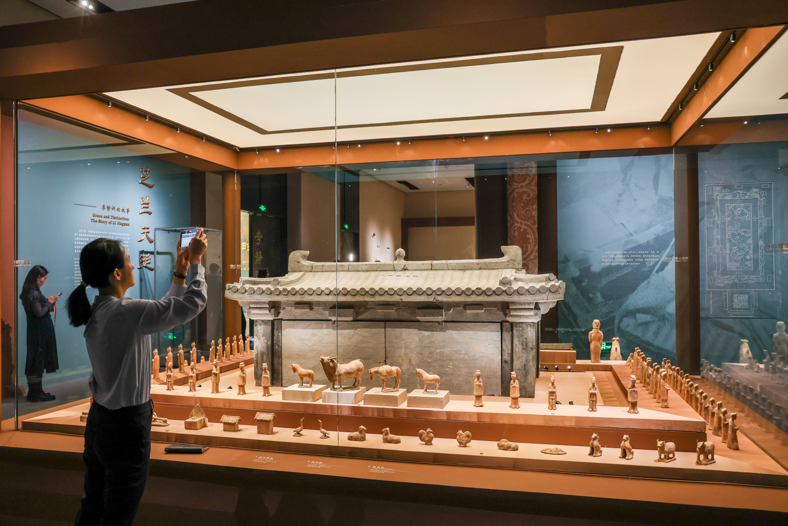 此次展览分“芝兰天挺”“青白交辉”“丝路琉光”“区宇宁一”4个部分,将近年来南北朝至隋代重要的考古发现代表性文物一并展出,展期将持续至10月8日。
