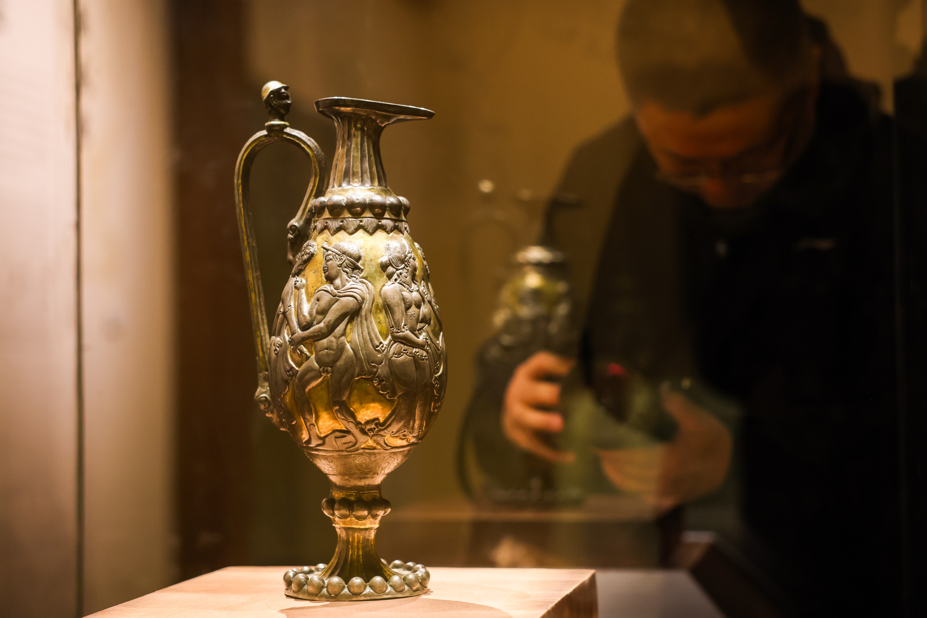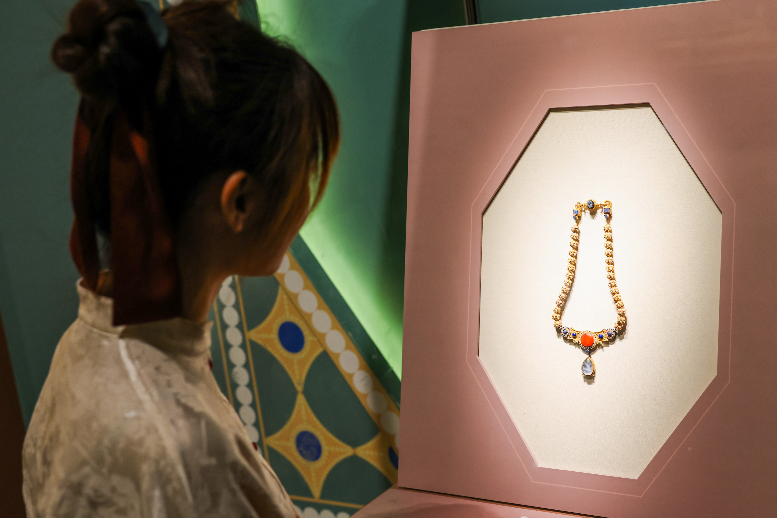 被称作绝世珍品的镶珍珠宝石金项链、镶金白玉杯等均在展出之列,是展览最大看点。