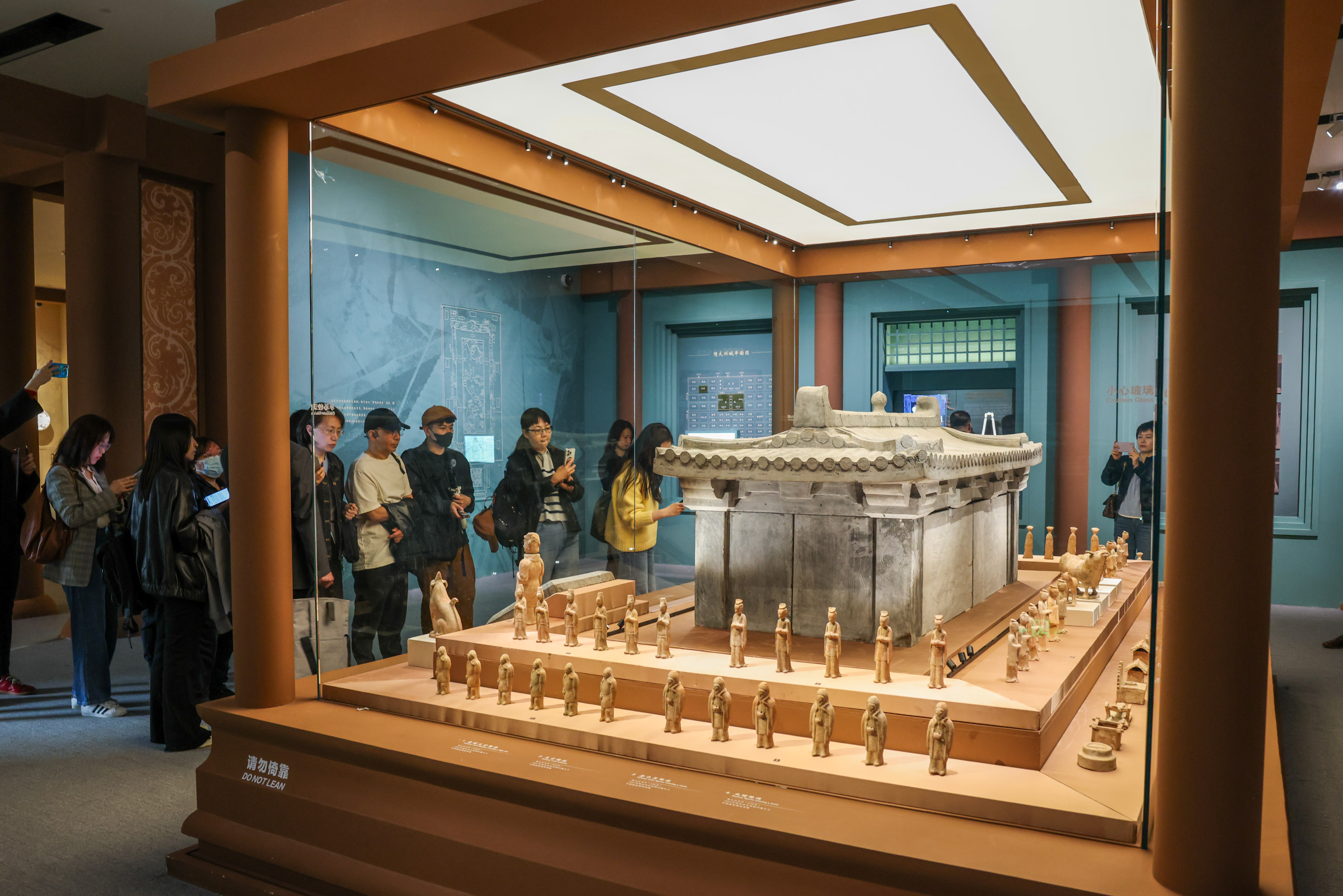 作为展览主角,李静训的形象在展厅几乎未曾出现。但一张张普通人的脸,成了逝去朝代与今人共情的纽带。陶俑武士拥有“最佳打工人表情”,双手合十的胡俑仿佛在说“拜托”、捧着熏笼的侍女俑眉目松弛……