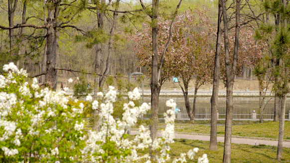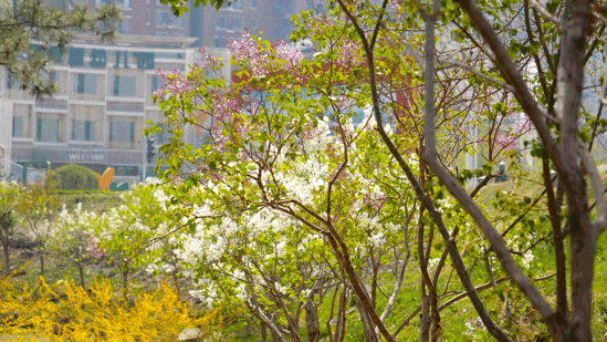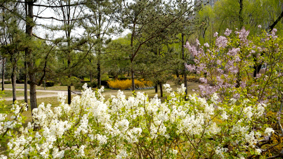 若是沿着顺义新城滨河森林公园和减河公园的河畔漫步,又是另一番景致。河岸两侧,丁香成行,紫白交错,绵延如带。微风拂过,清幽的花香漫溢开来,沁人心脾。