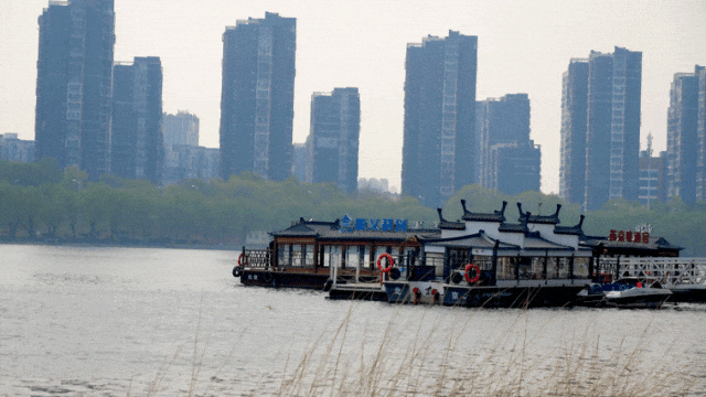 水鸟掠过水面,惊起涟漪,岸边的丁香花影婆娑。夕阳西下,余晖洒在花穗上,染上一层金边,花影与霞光交织,让人久久不愿离去。