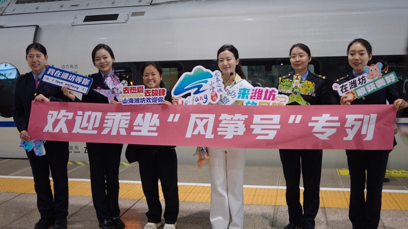 “欢迎乘坐‘风筝专列’,与我们一同感受风筝文化……”今天中午12时31分,G1069次“风筝专列”从北京南站准时发车,驶向“世界风筝之都”潍坊。4月13日至19日,G1069次将化身“风筝专列”,载着北京旅客乘高铁赴潍,一同赴约春日风筝盛宴。
