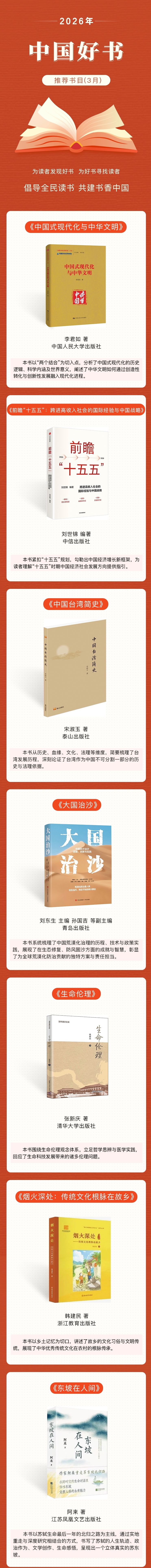 在中宣部出版局指导下,经中国图书评论学会组织评选,2026年3月“中国好书”推荐书目日前在京发布。