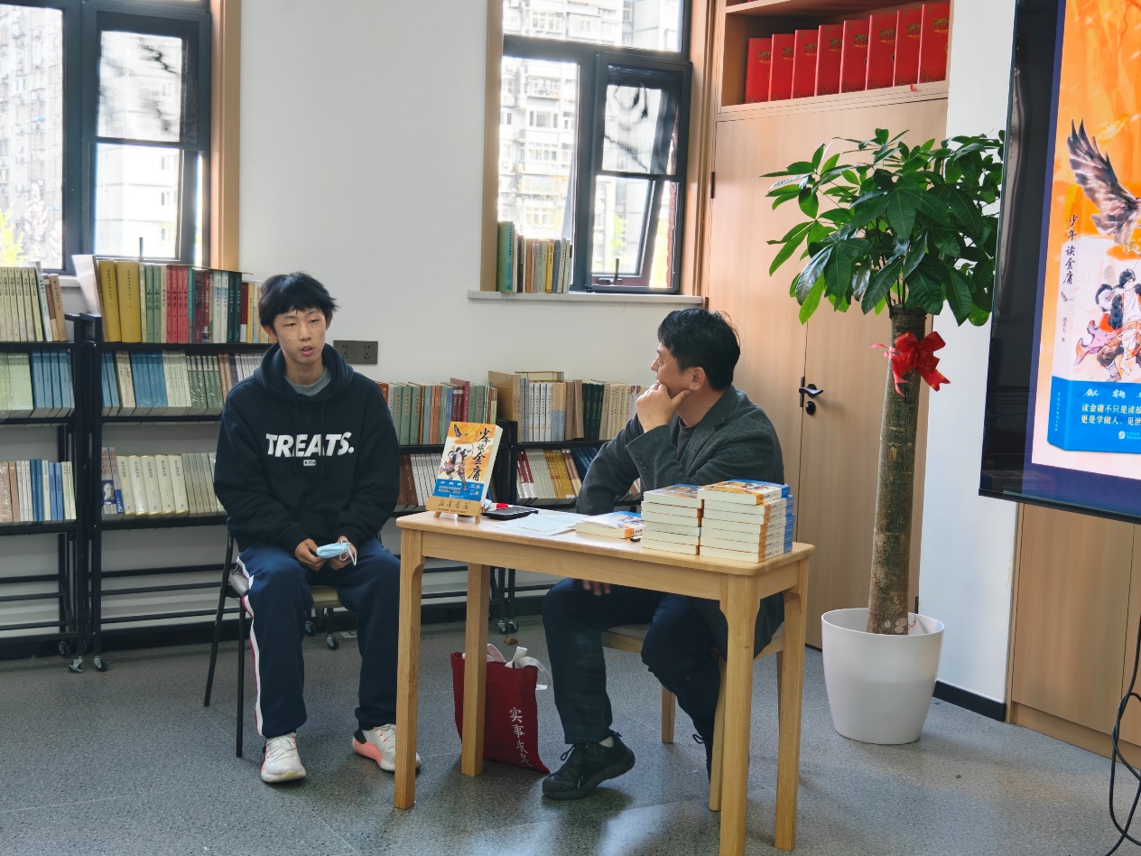 讲座中,潘老师还结合《少年读金庸》一书,为读者们分享少年读金庸的意义:金庸武侠不仅是快意恩仇的江湖故事,更是成长的教科书,其中的勇气、担当、善良与正义,能为少年的成长注入精神力量。他从“英雄的故事”“好在哪”“青春与武侠”等角度,解读金庸武侠对少年成长的价值。现场读者听得入神,时而点头认同,时而会心一笑,仿佛跟着潘老师,重新走进了那个刀光剑影却又温情满满的金庸江湖。