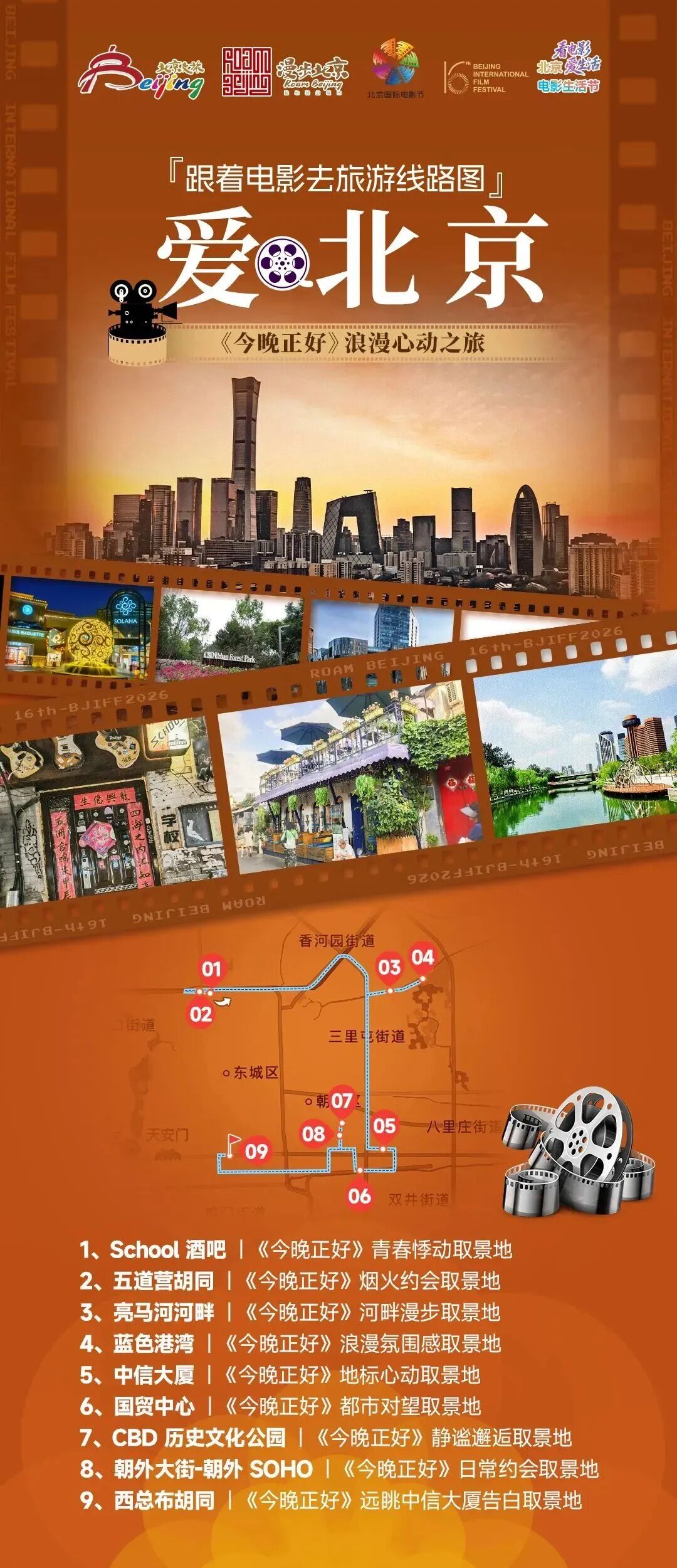 北京电影生活节期间将推出10条“跟着电影去旅游”主题线路,以经典影片为线索,串联京城核心地标,让观众们在光影的世界里尽情遨游。