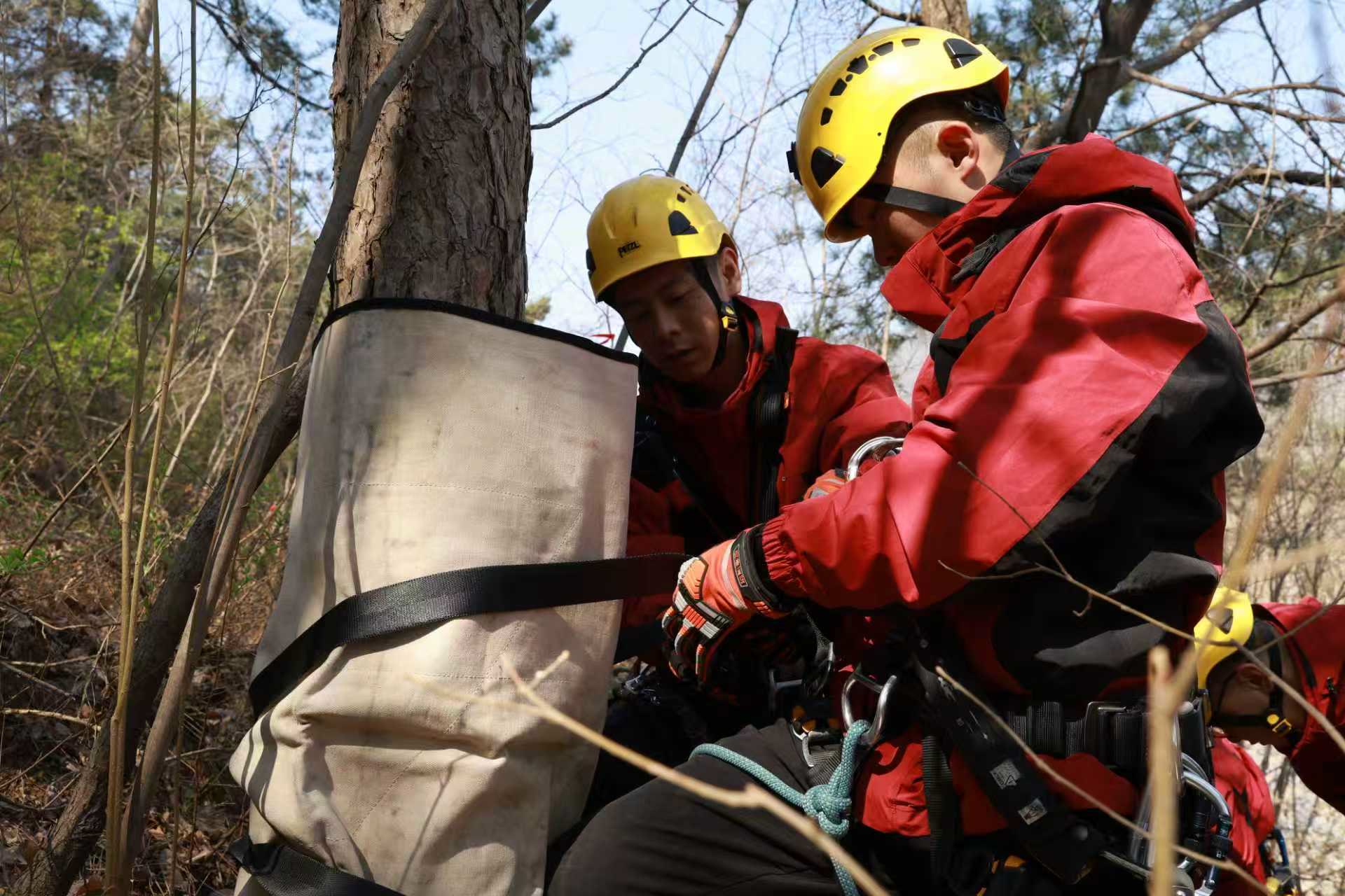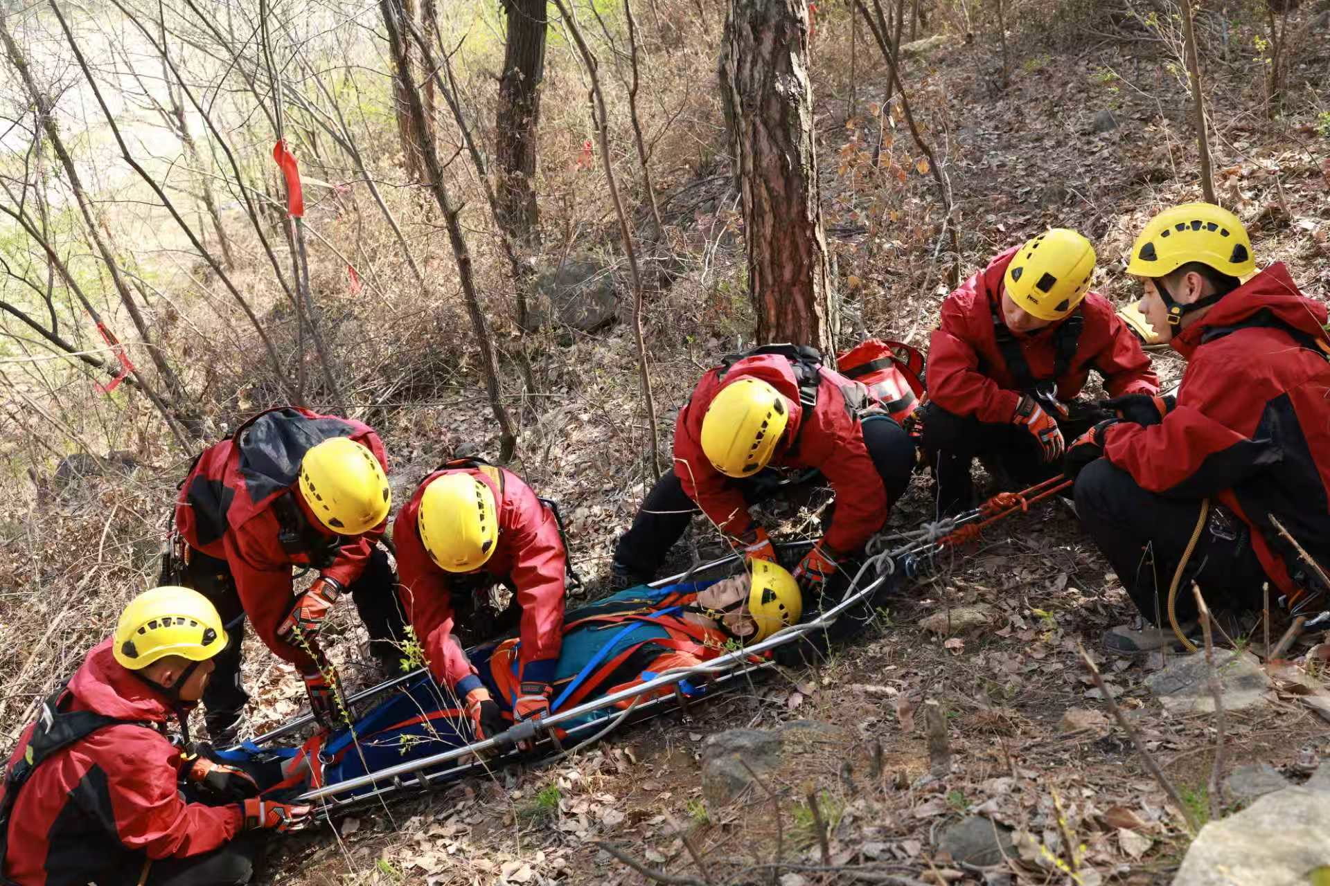 正值春暖花开的季节,不少市民游客选择登山游玩,意外被困事件也随之增多。在山区面积广大的怀柔区,今年以来消防部门已处置14起市民被困警情,而近一个月就有8起。为应对赏花季出游高峰,锤炼山岳救援技能,近日,怀柔区国际会都消防救援站的队员在野山开展了一场陡坡转运伤员的演习。