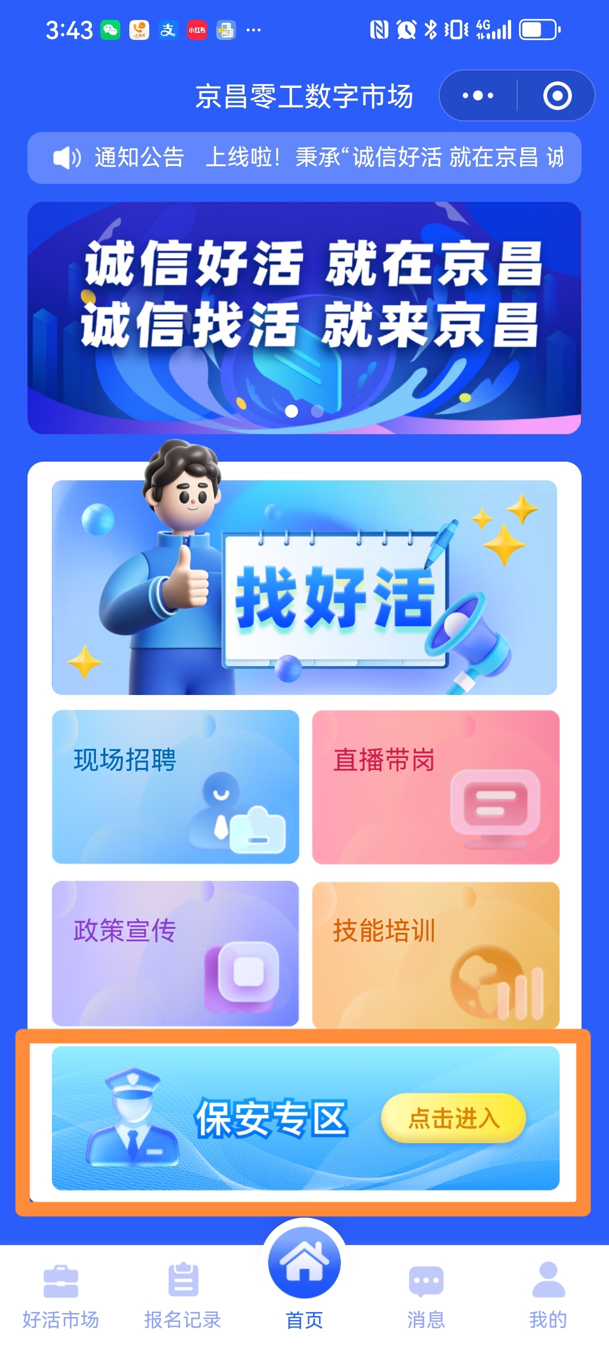 这份满意的工作,正是通过“京昌零工”小程序首页的“保安专区”快速匹配而来。这里有海量岗位,通过薪资待遇、经验要求、企业福利等选项的筛选,就能快速浏览到符合需求的工作。同时,在用户登录并填写工作经历等信息后,平台也会运用大数据算法,根据年龄、经验、技能、工作区域等岗位要求,与用户个人信息及求职意向精准匹配。人员正式上岗后,平台还会提供考勤打卡、保险缴纳、支付报酬核算及自动结算服务,保障供需双方合法权益。